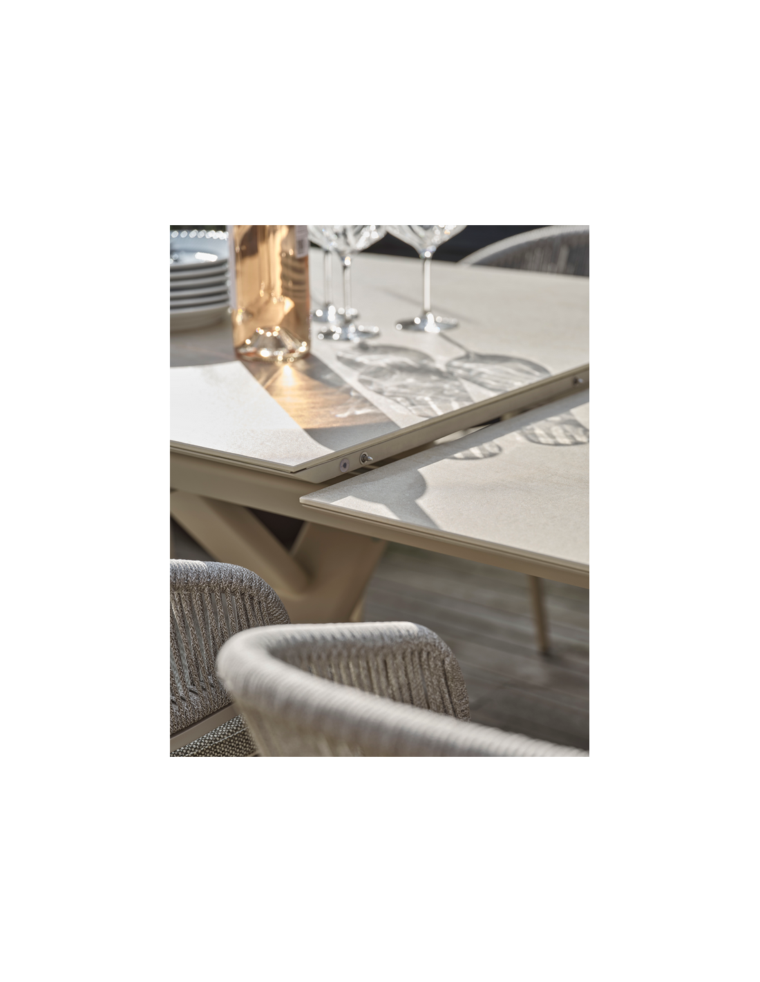 ELBA Havebord med udtræk i aluminium og keramik H76 x B240 - 300 x D100 cm - Beige/Beige sten
