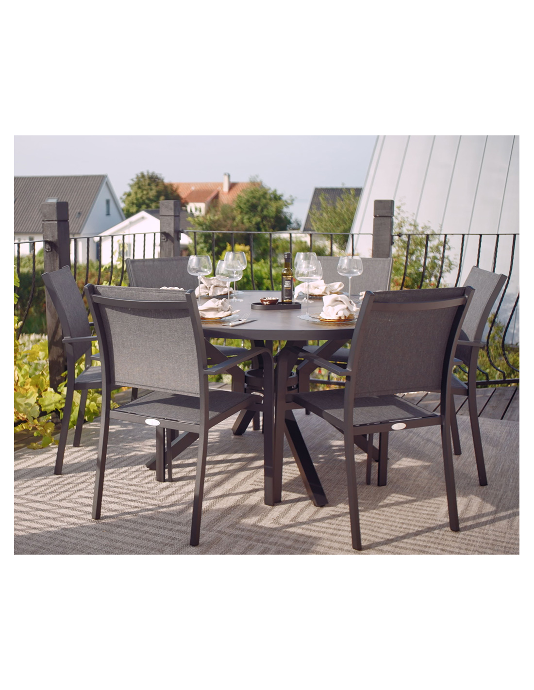 Hillerstorp rundt havebord i aluminium og keramisk glas Ø140 cm - Sort/Grå
