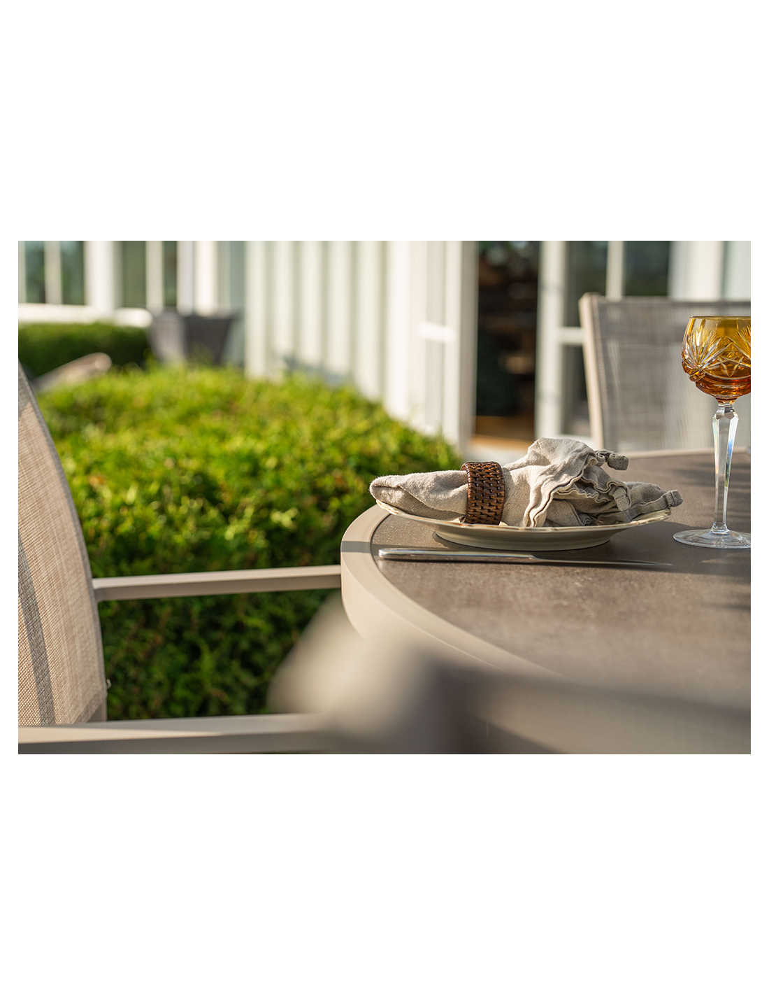 Hillerstorp rundt havebord i aluminium og keramisk glas Ø140 cm - Gråbeige/Grå