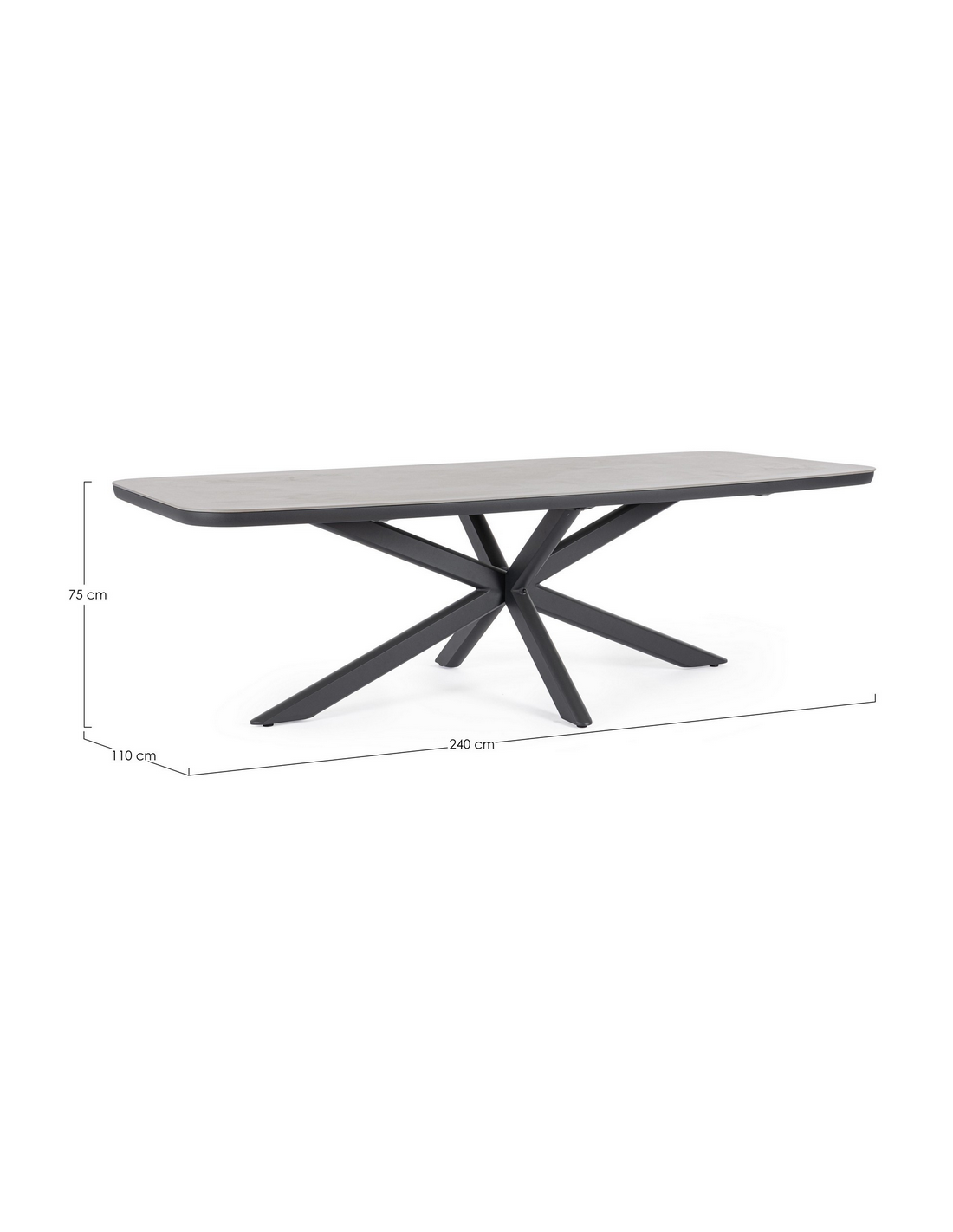 ISA Havebord udført i et design af antracit pulverlakeret aluminium og grå keramik. Bordet måler 75 cm i højden og 240 x 110 cm i bredde og dybde.
