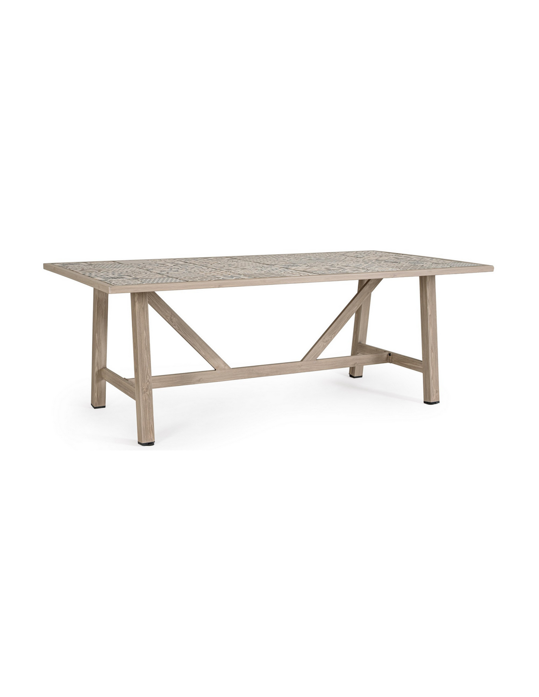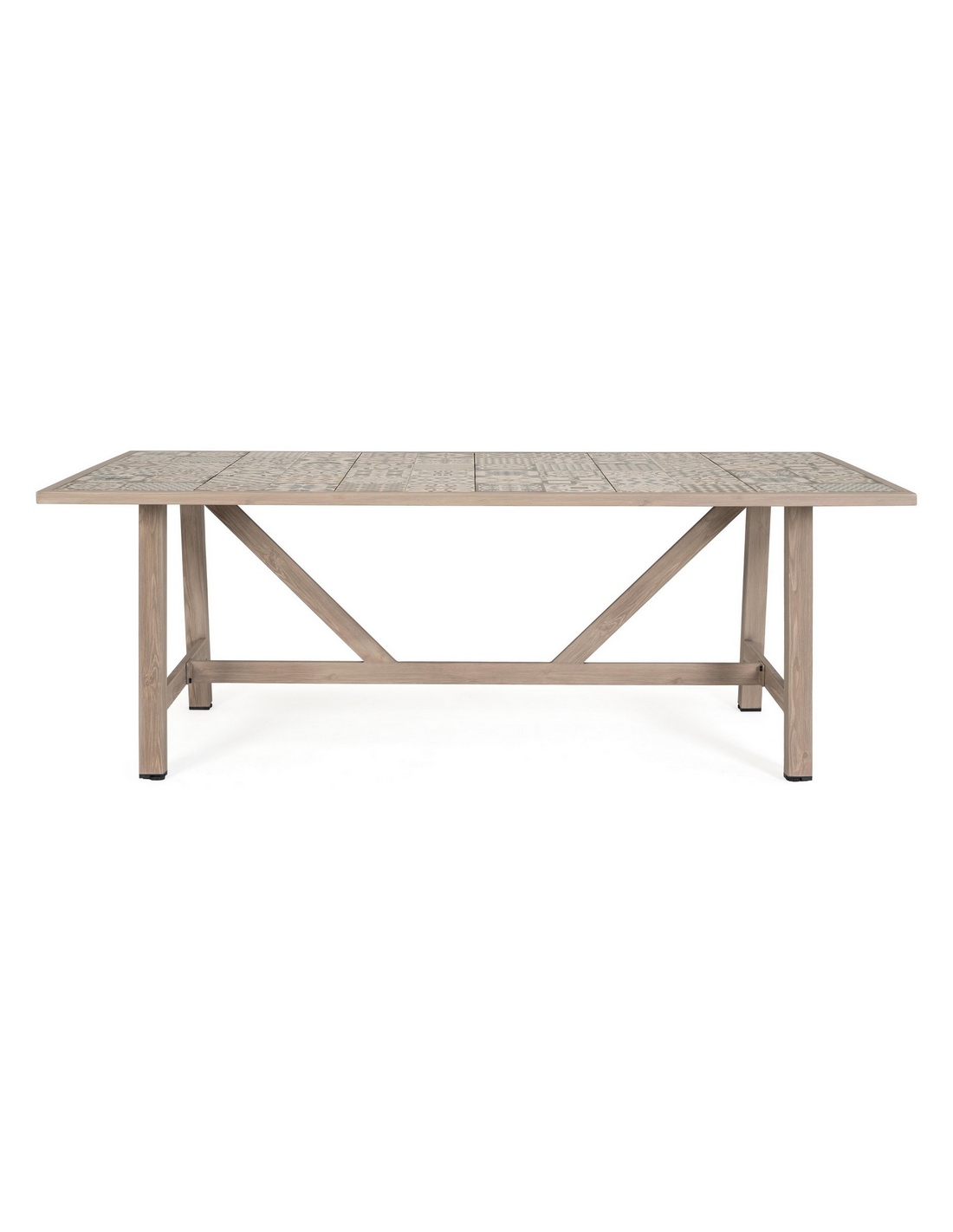 KALI Havebord i aluminium og keramik 206 x 106 cm - Grå trælook/Mix