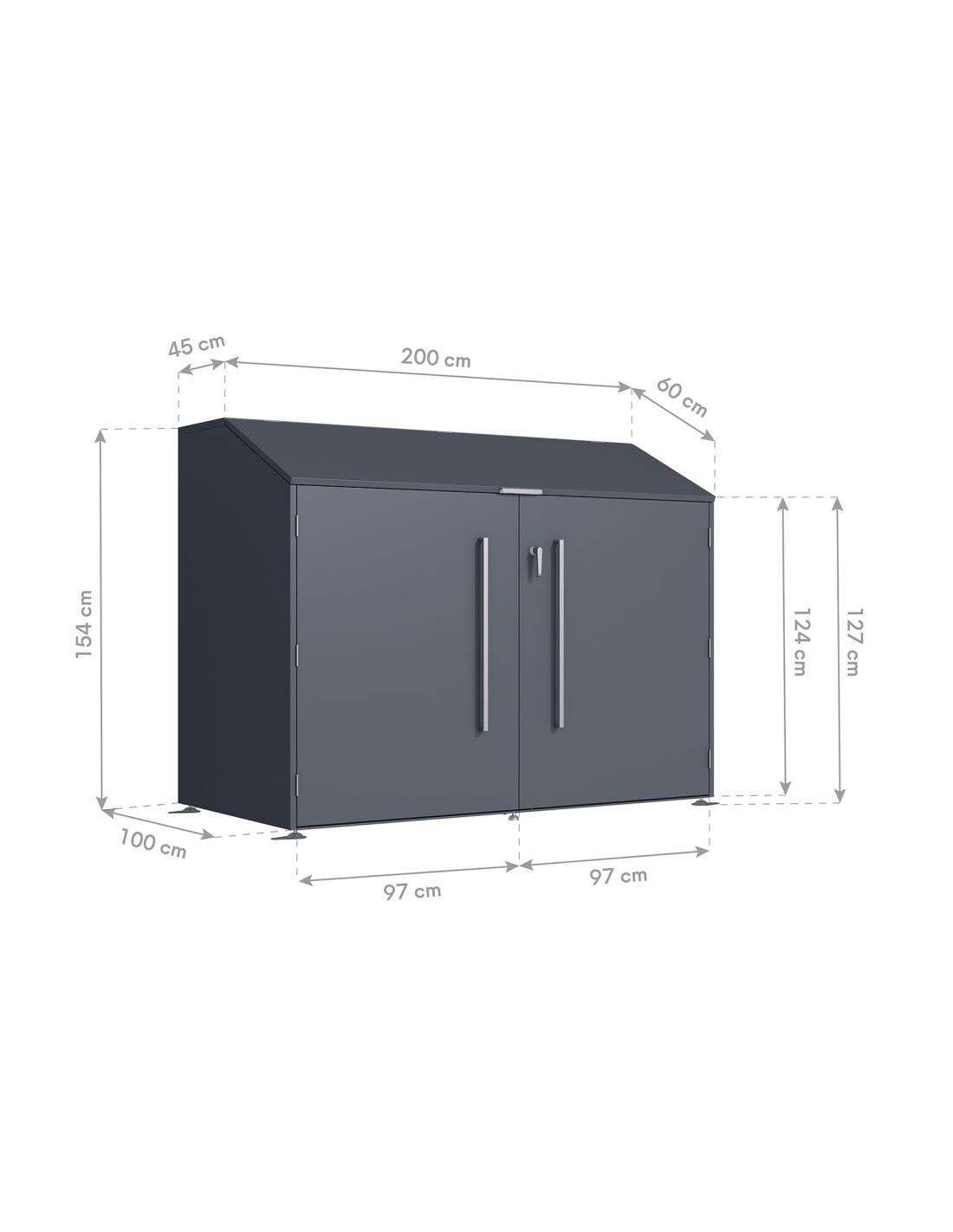 Westmann Cykelskur i stål H124 - 154 x B200 x D45 - 100 cm - Antracit