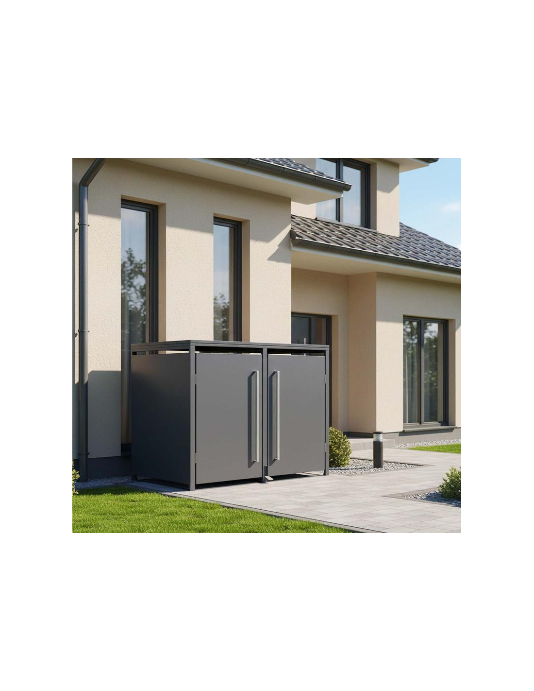 Westmann Pedura Skraldespandsskjuler udført i et design af antracit lakeret stål. Skraldespandsskjuleren rummer 2 spande og måler 116 cm i højden og 132 x 80 cm i bredde og dybde. Skjuleren åbnes både i front og top. Begræns adgangen for mus, rotter og ræve med en skraldespandsskjuler.
