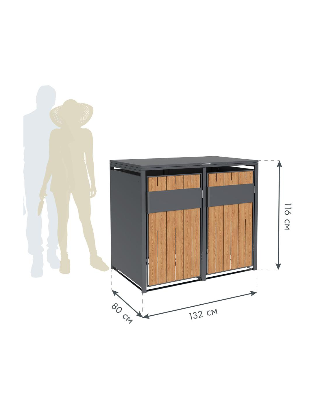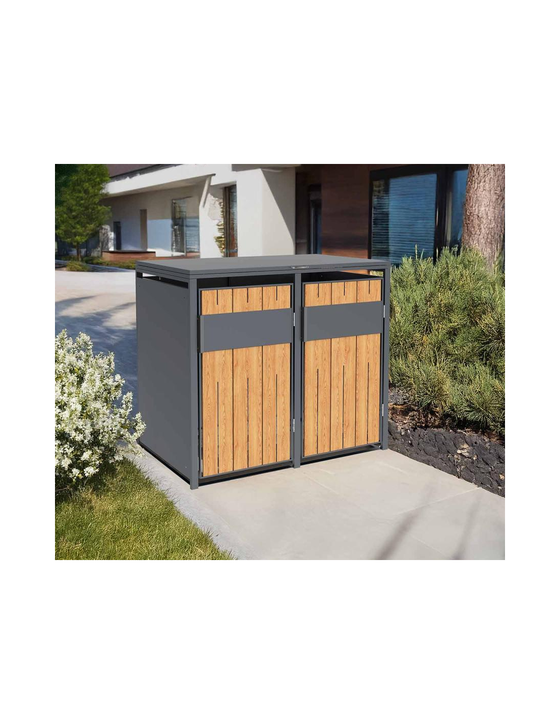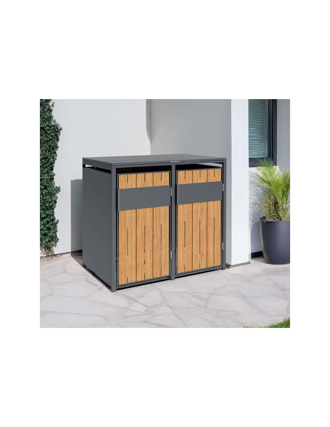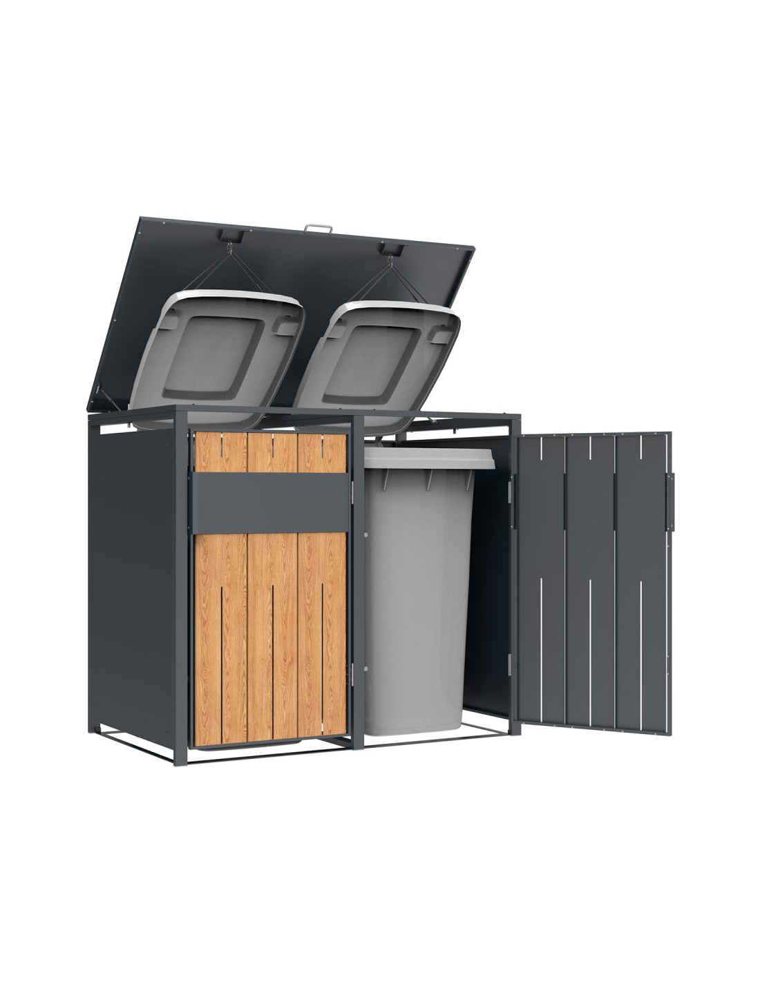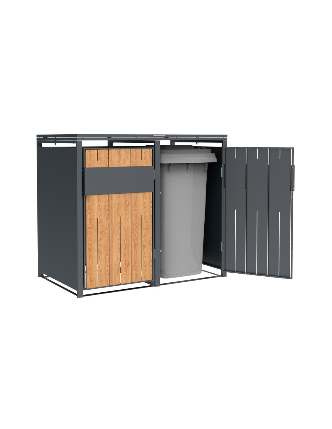Westmann Varius Skraldespandsskjuler i stål H116 x B132 x D80 cm - Antracit/Trælook
