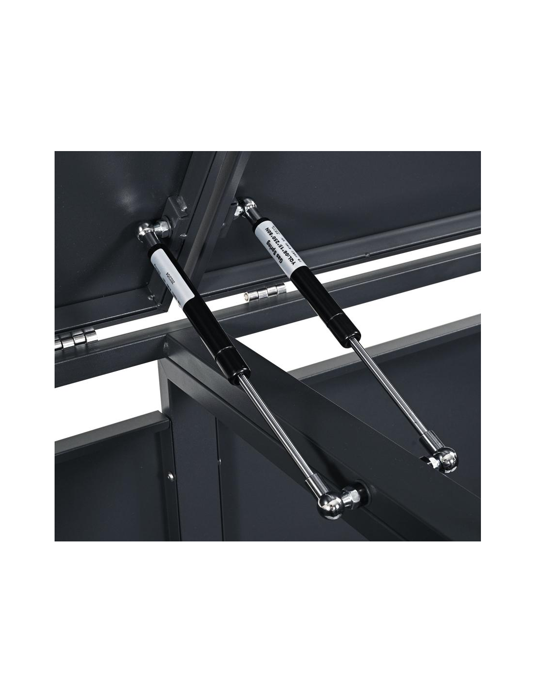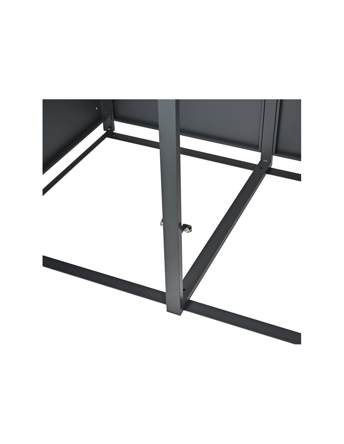 Westmann Varius Skraldespandsskjuler udført i et design af trælook og antracit lakeret stål. Skraldespandsskjuleren rummer 6 spande og måler 116 cm i højden og 397 x 80 cm i bredde og dybde. Skjuleren åbnes både i front og top. Begræns adgangen for mus, rotter og ræve med en skraldespandsskjuler.