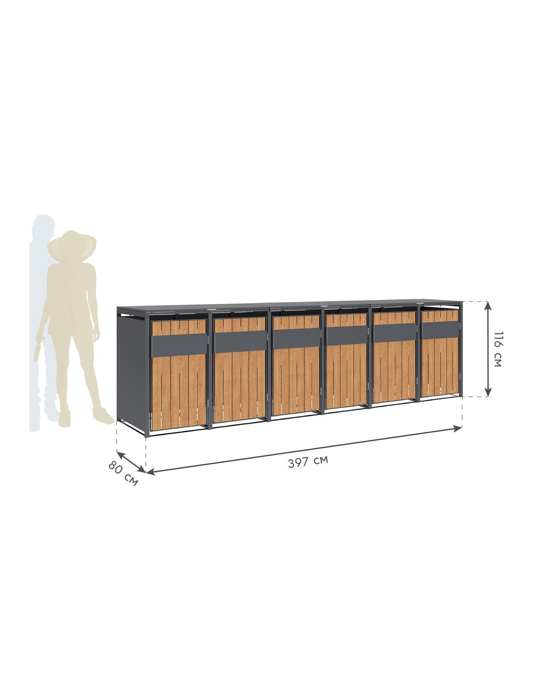 Westmann Varius Skraldespandsskjuler i stål H116 x B397 x D80 cm - Antracit/Trælook