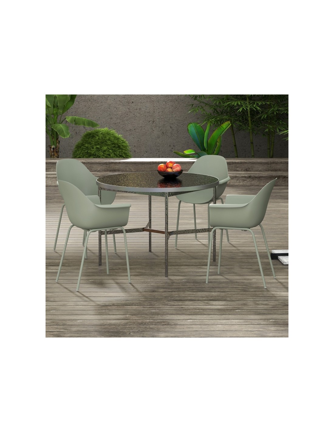 Sæt med 4 x Havestole i stål og kunststof H84 cm - Mat grøn