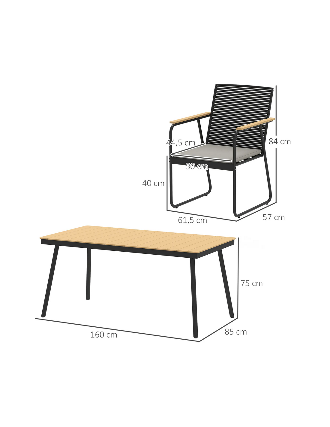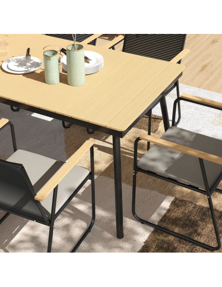 Spisebordssæt udendørs i metal og polyester - Sort/Natur