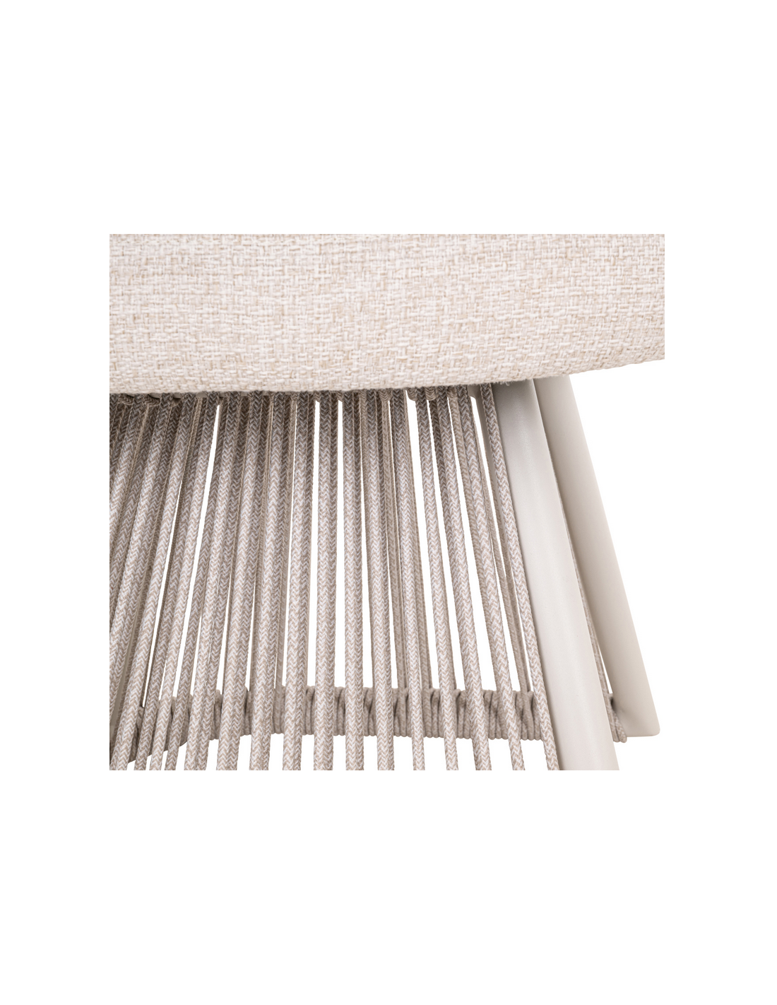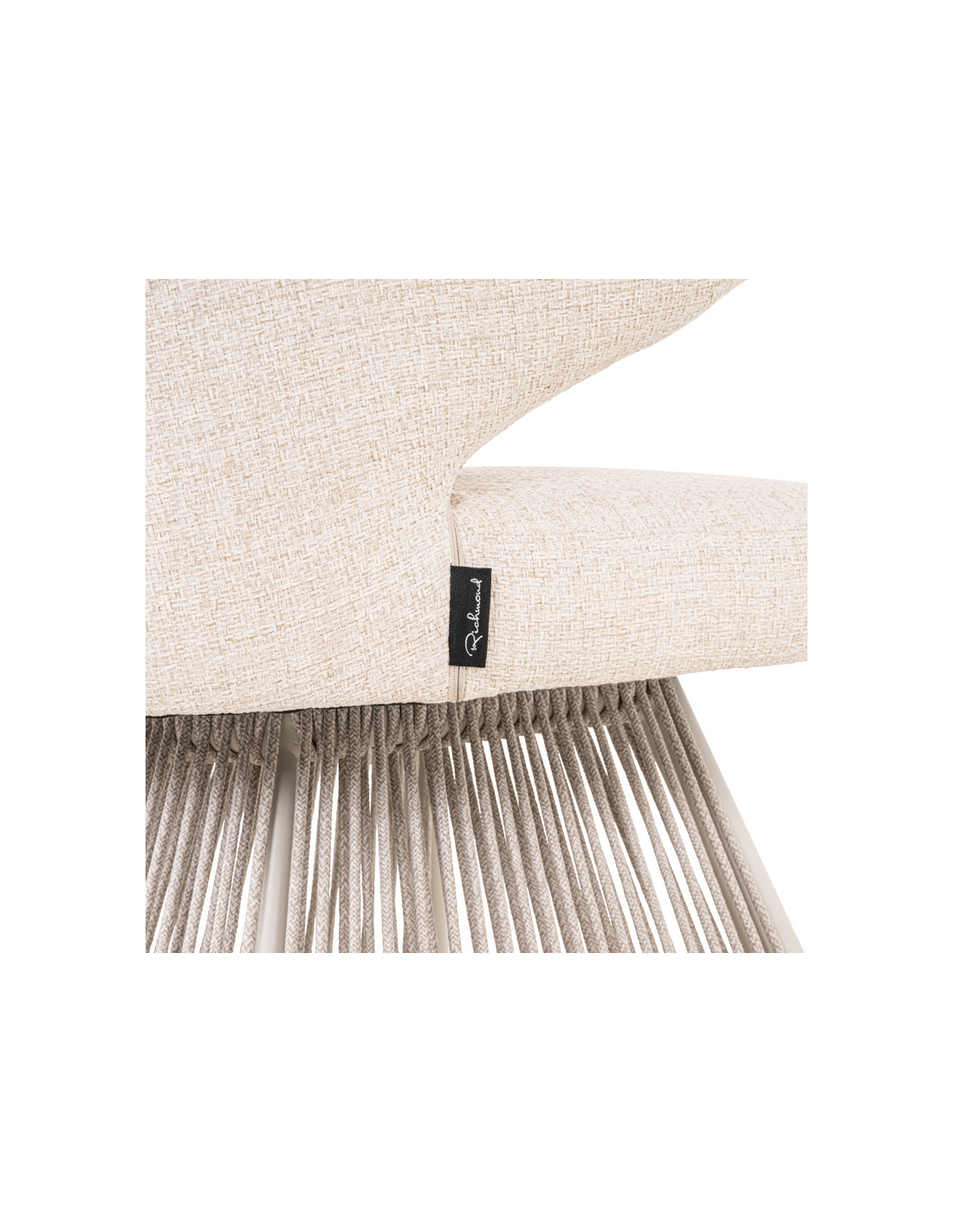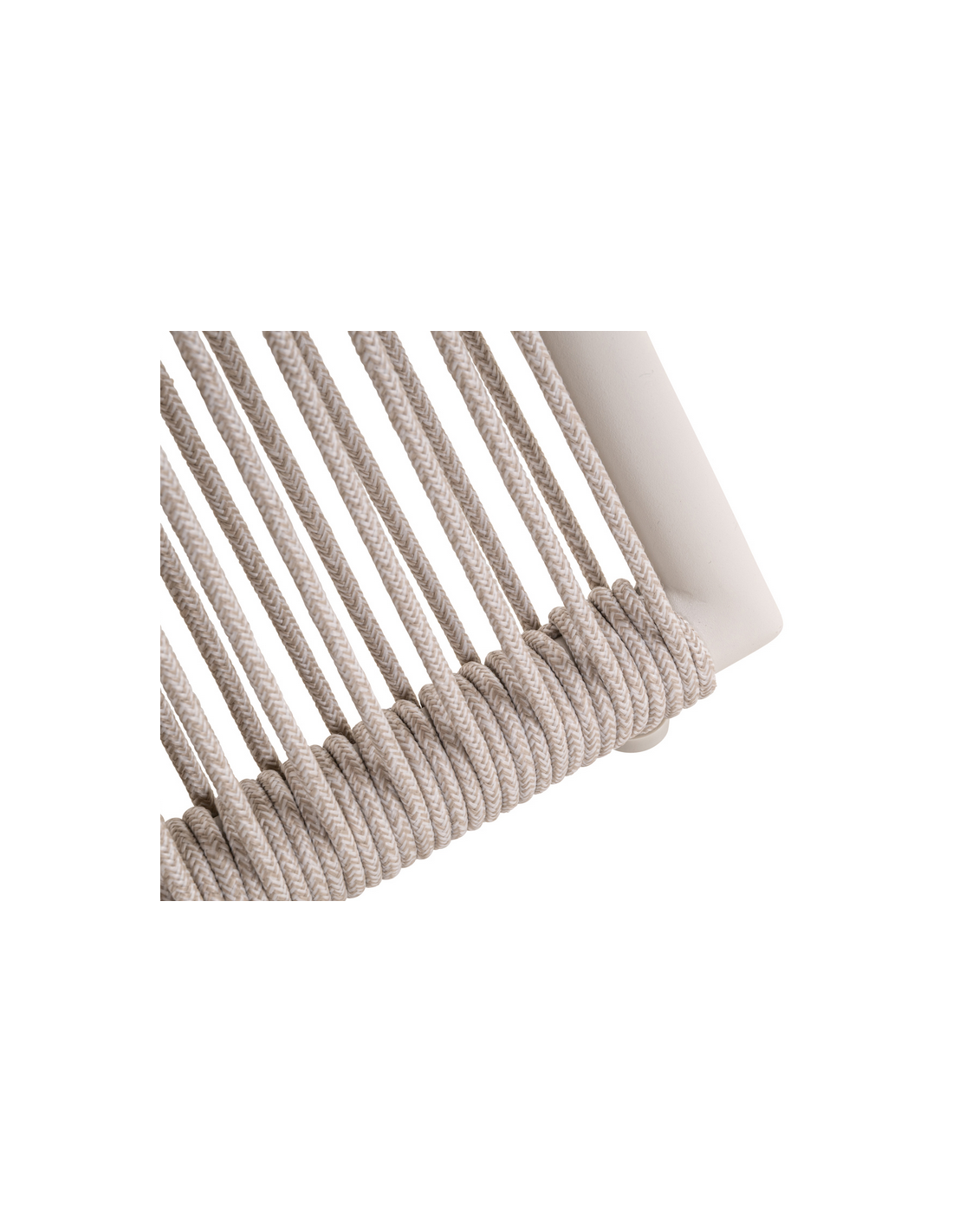 NUBA Havestol udført i et design fra hollandske Richmond Interiors. Stolen er fremstillet med stel i beige lakeret aluminium og reb og sæde i beige olefin med quick dry foam, der hurtigt sender regn og væske videre og sikrer at du ikke sætter dig på en våd stol. Betrækket er fremstillet af UV beskyttet, der sikrer at stolen holder dens udseende i mange år frem, da tekstilen ikke falmer. Stolen måler 81,5 cm i højden over ryggen og med en siddehøjde på 47 cm.