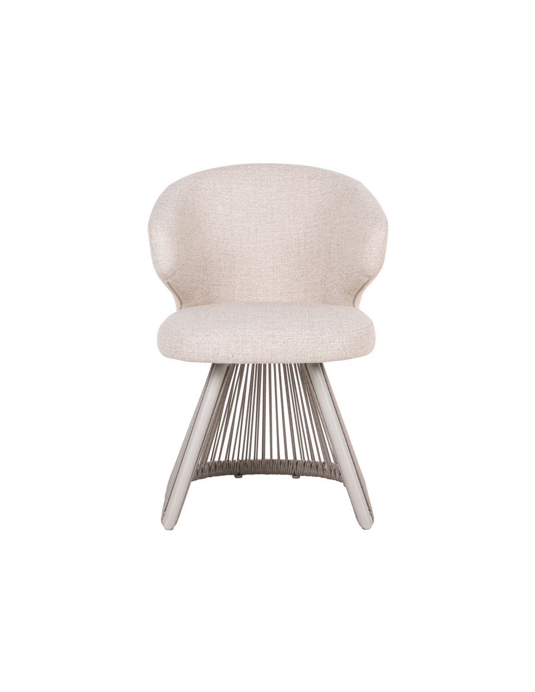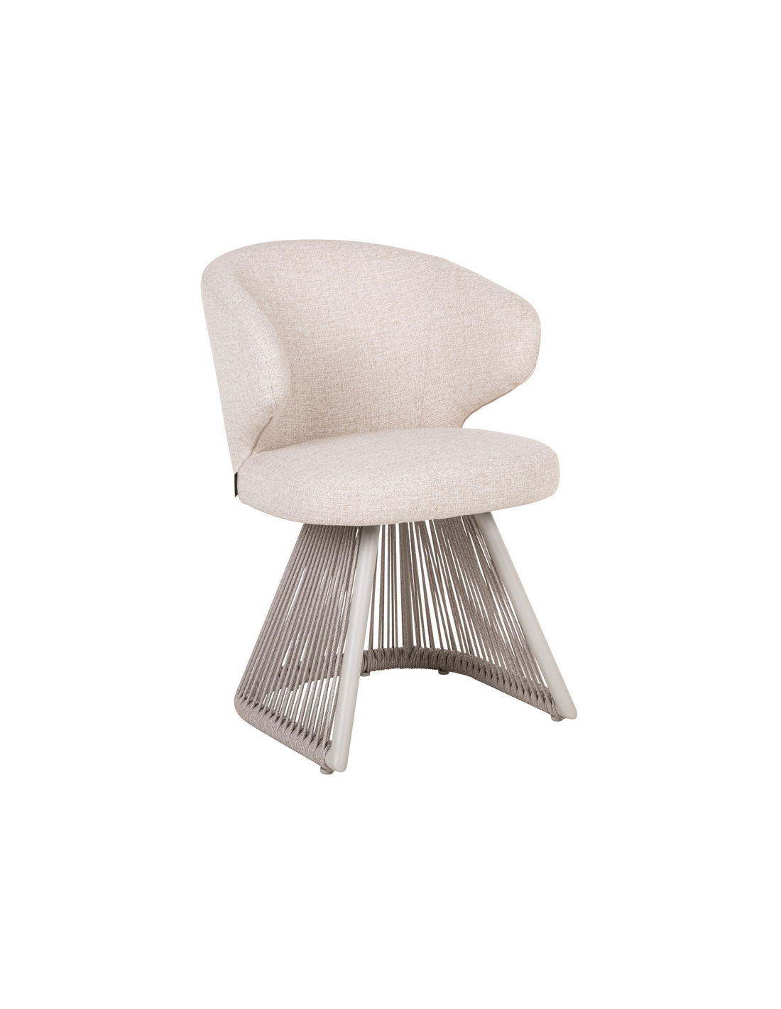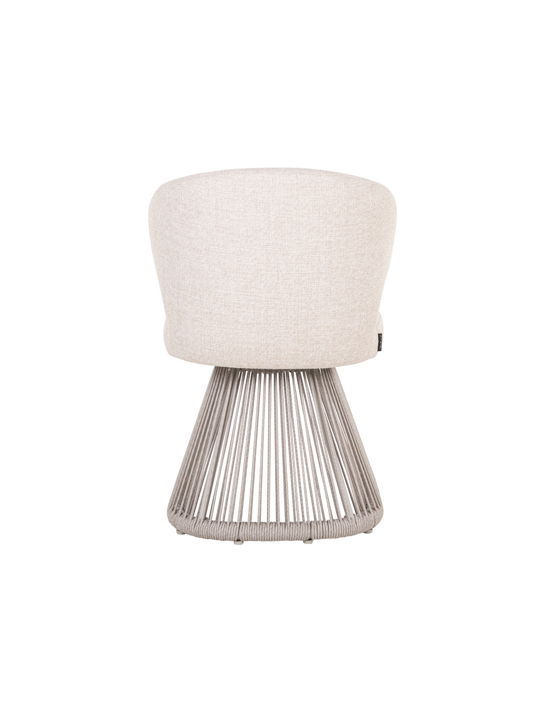 NUBA Havestol udført i et design fra hollandske Richmond Interiors. Stolen er fremstillet med stel i beige lakeret aluminium og reb og sæde i beige olefin med quick dry foam, der hurtigt sender regn og væske videre og sikrer at du ikke sætter dig på en våd stol. Betrækket er fremstillet af UV beskyttet, der sikrer at stolen holder dens udseende i mange år frem, da tekstilen ikke falmer. Stolen måler 81,5 cm i højden over ryggen og med en siddehøjde på 47 cm.