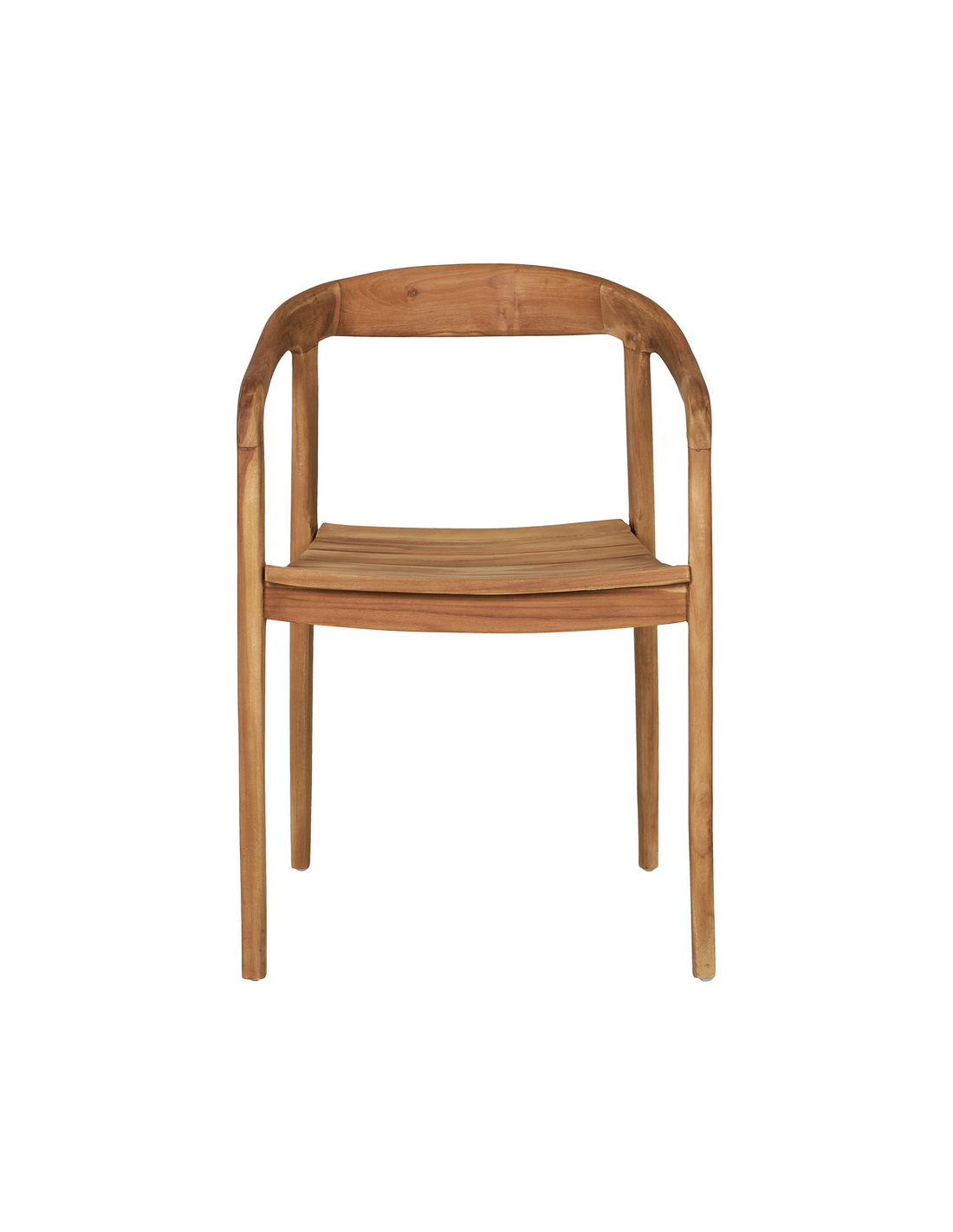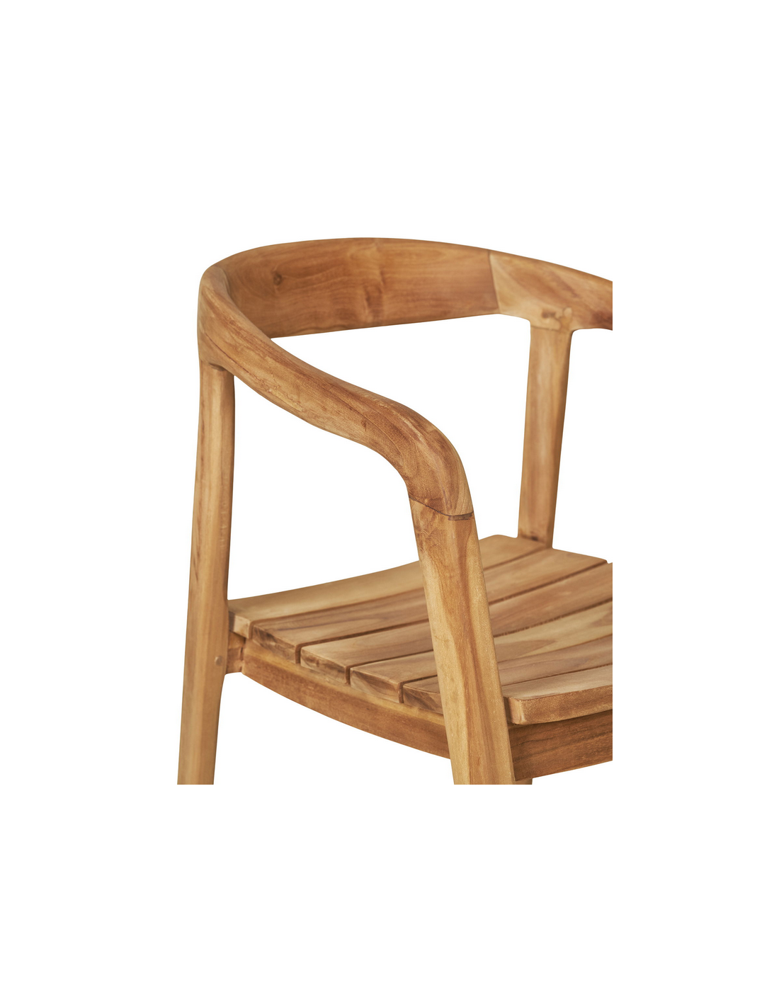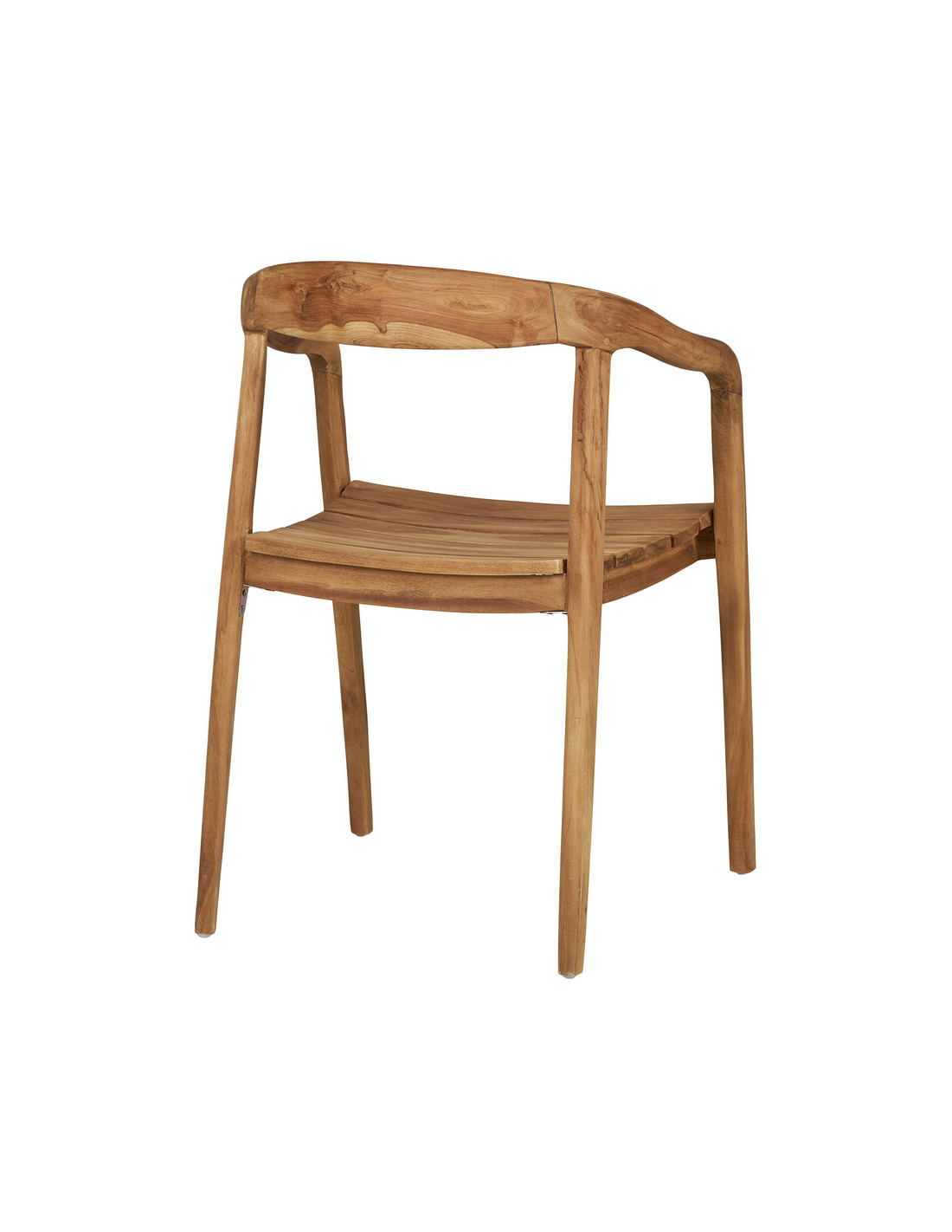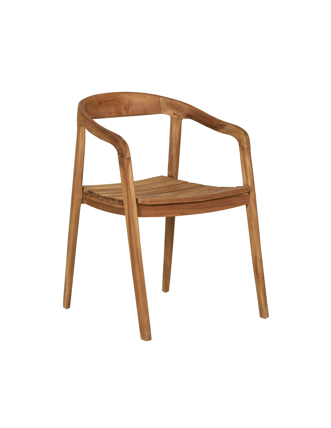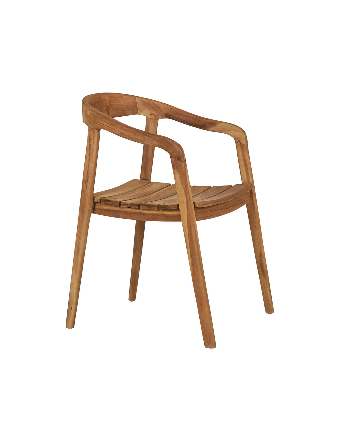 Havestol med armlæn, udført i et design af teaktræ. Havestolen måler 73 cm i højden over ryggen og med en siddehøjde på 46 cm.