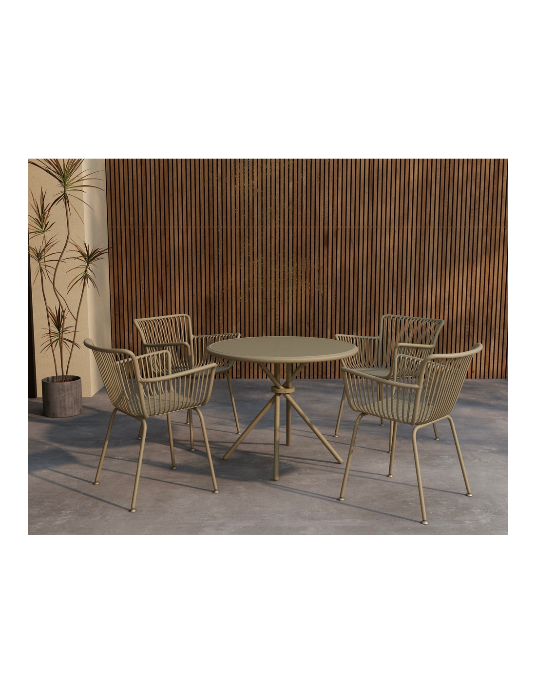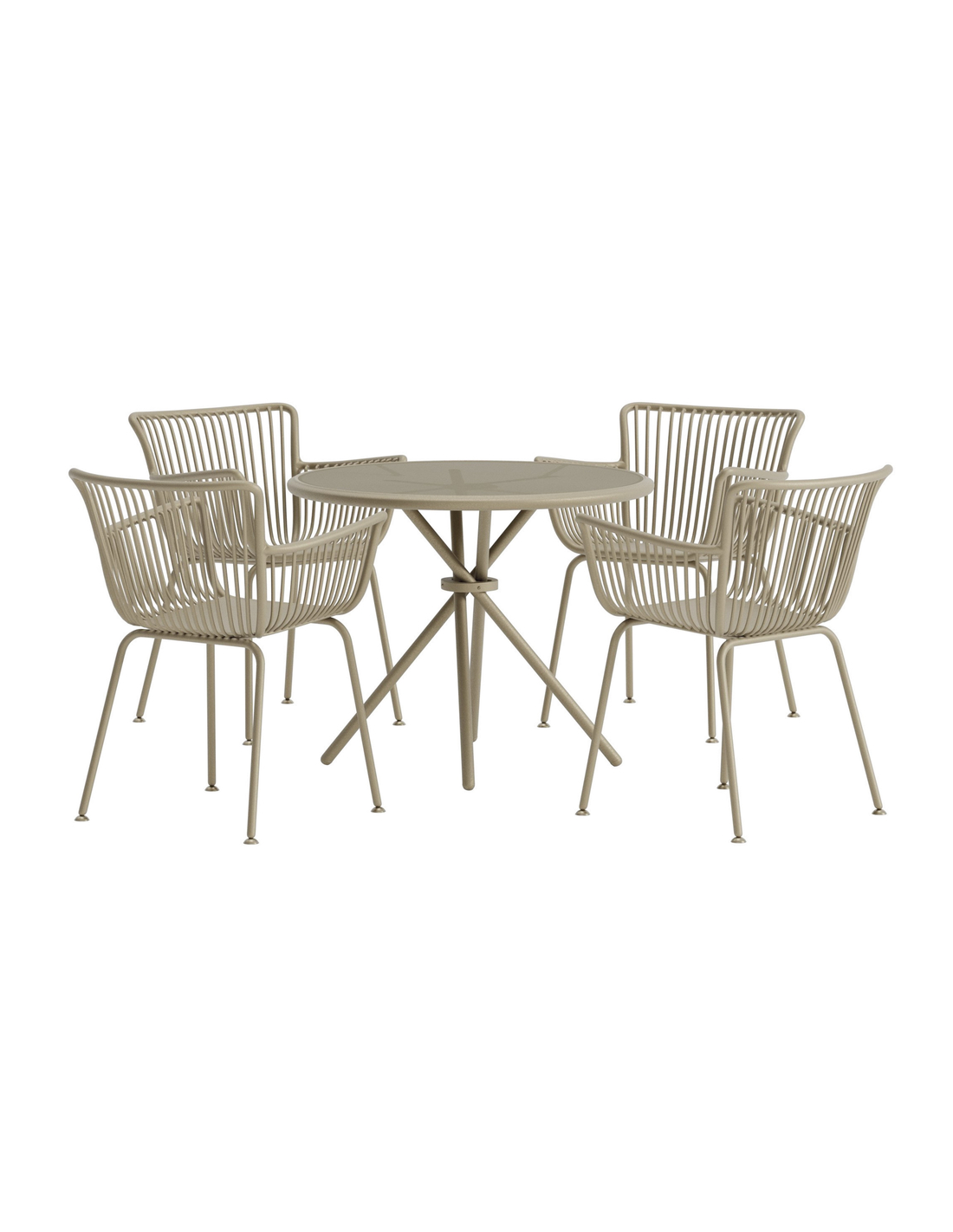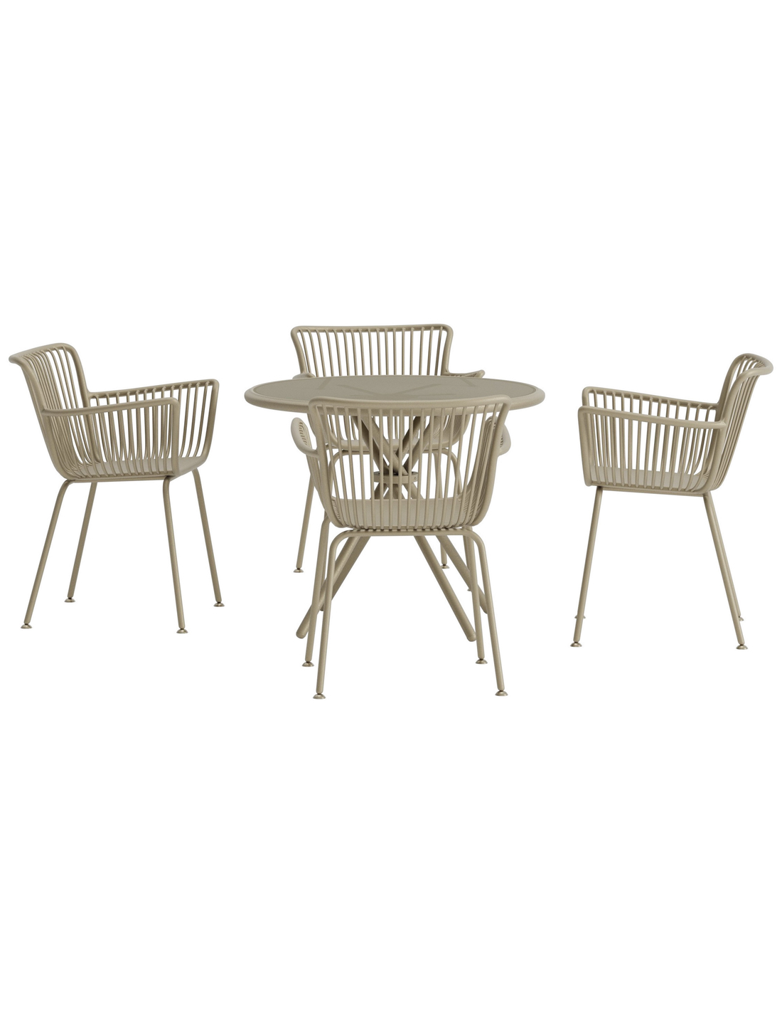 SIFNO Havemøbel sæt, udført i et nordisk design af beige pulverlakeret rustfri stål og polypropylene. Sættet består af 4 x havestole og 1 x havebord.