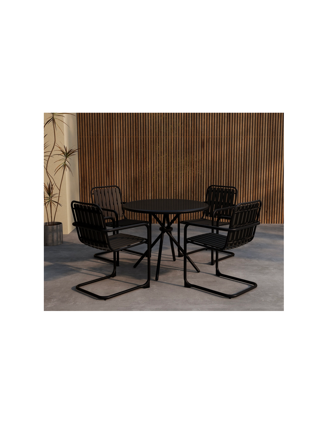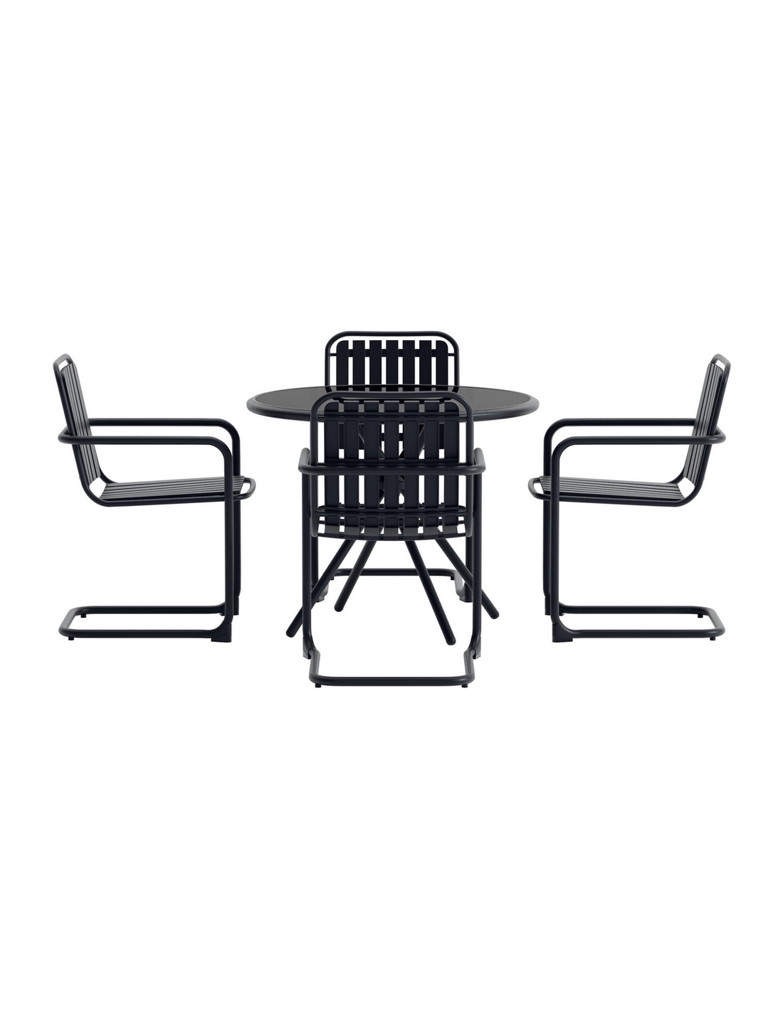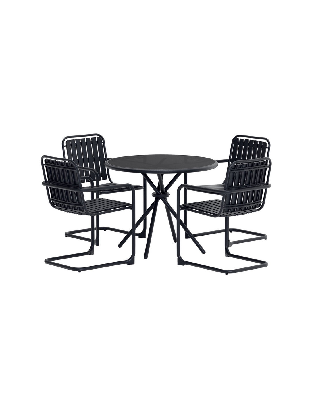 CHIO Havemøbel sæt, udført i et nordisk design af sort pulverlakeret rustfri stål og polypropylene. Sættet består af 4 x havestole og 1 x havebord.