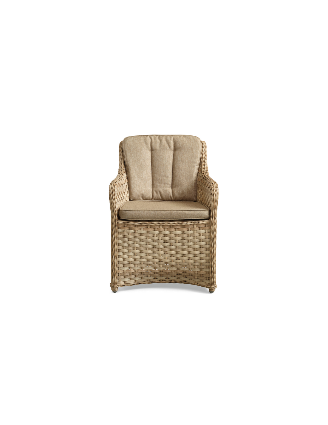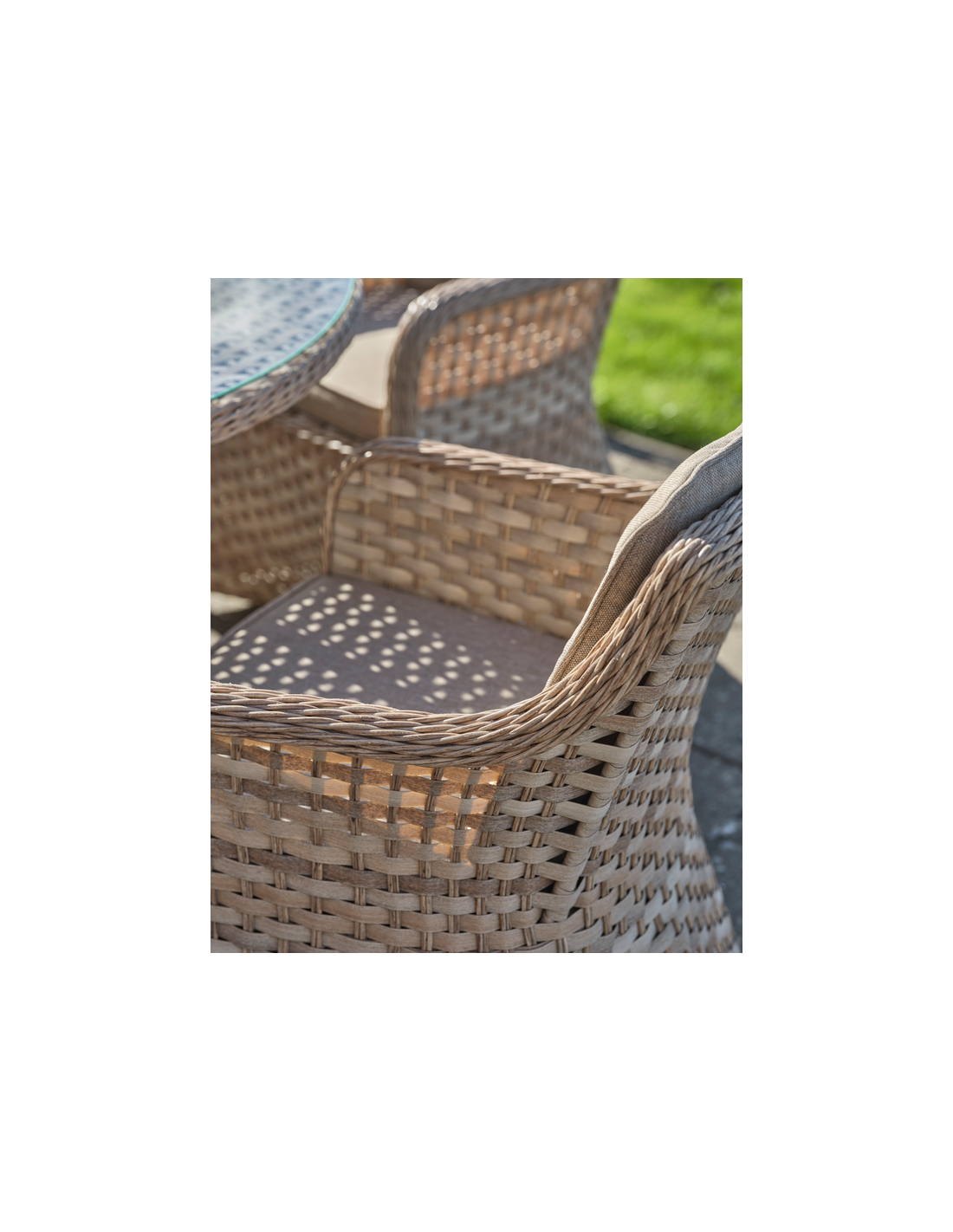 NUSA Sæt med 2 x havestole udført i et design af naturfarvet polyrattan med et indre i aluminium. Hertil hynder i naturfarvet polyester med skumfyld. Stolene måler 88 cm i højden over ryggen. Kombinér eventuelt med COCOS havebordene.