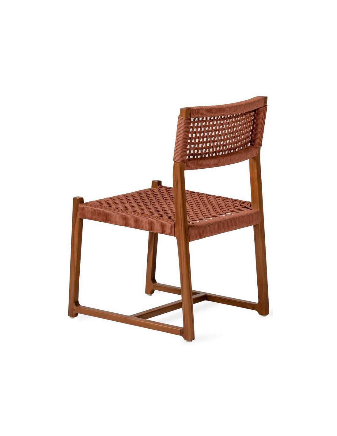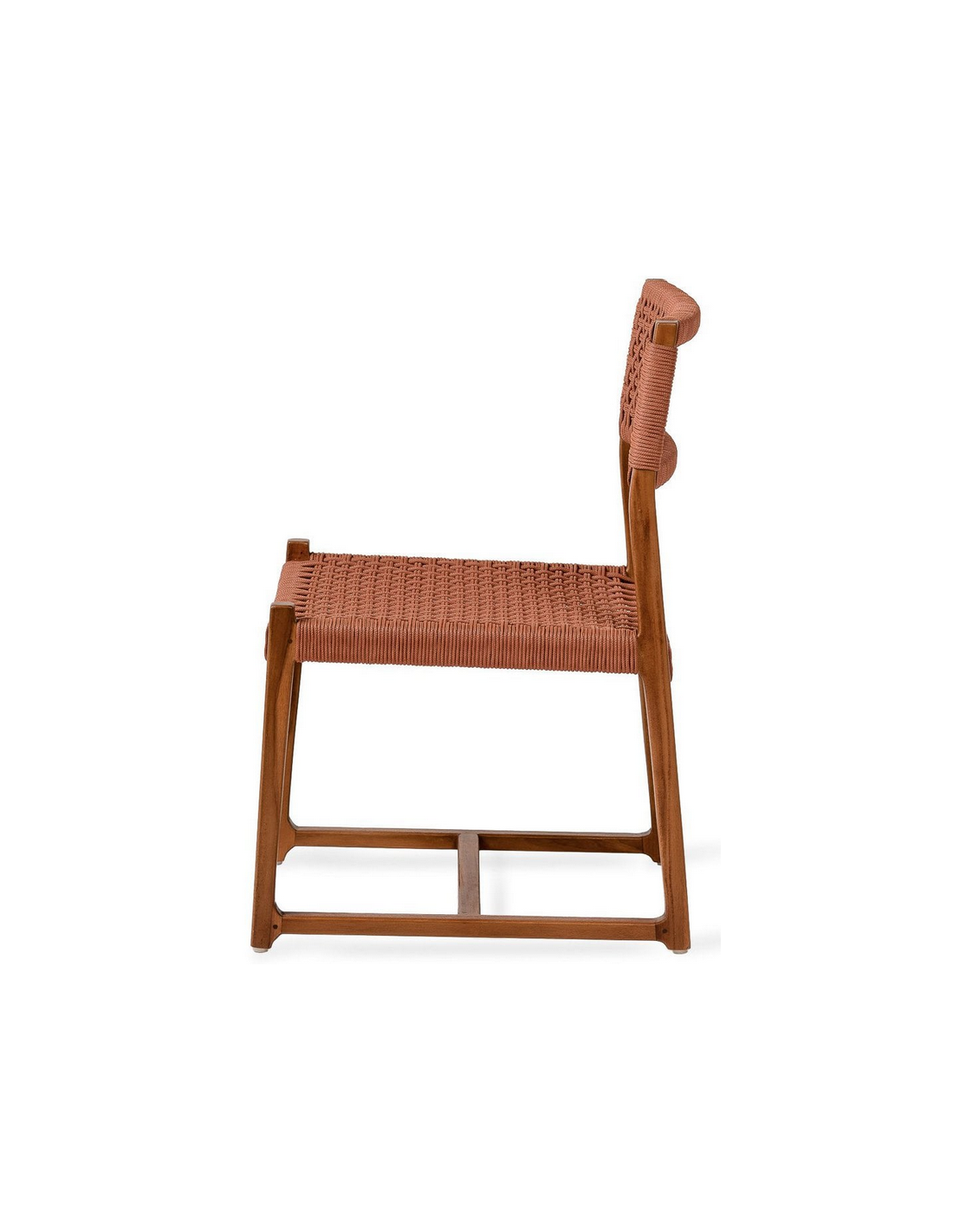 KUWANA Havestol udført i et moderne design af lysebrunlakeret teaktræ og terracottafarvet olefin reb, der er både UV-resistent og vandafvisende. Stolen måler 81 cm i højden over ryggen. Teaktræ er naturligt resistent overfor fugt, men vi anbefaler dog, at stolen opbevares tørt henover vinterperioden.