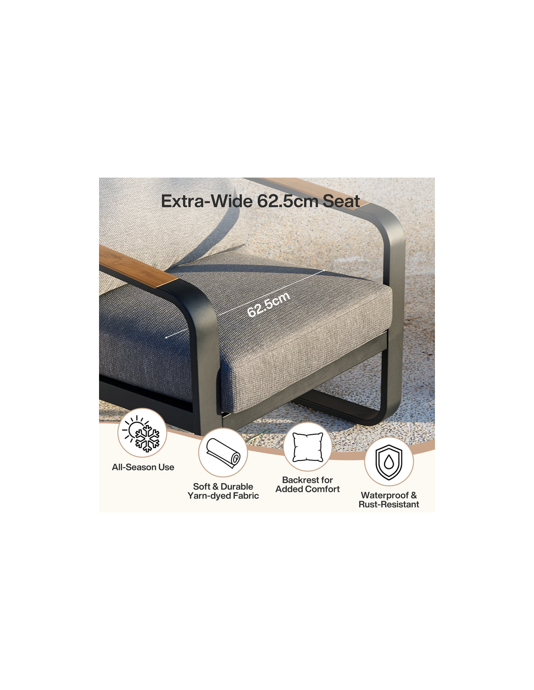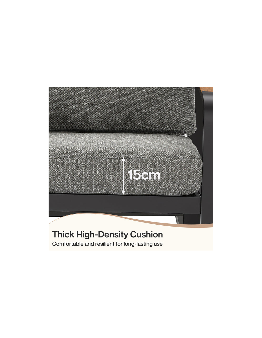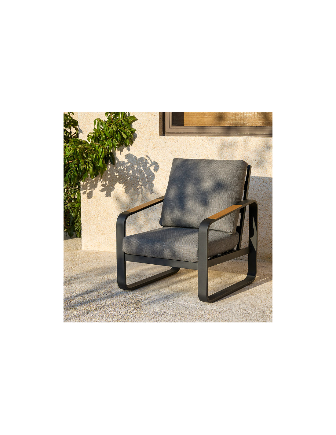 Lounge havestol i metal, træ og olefin H90 cm - Mørkegrå/Grå