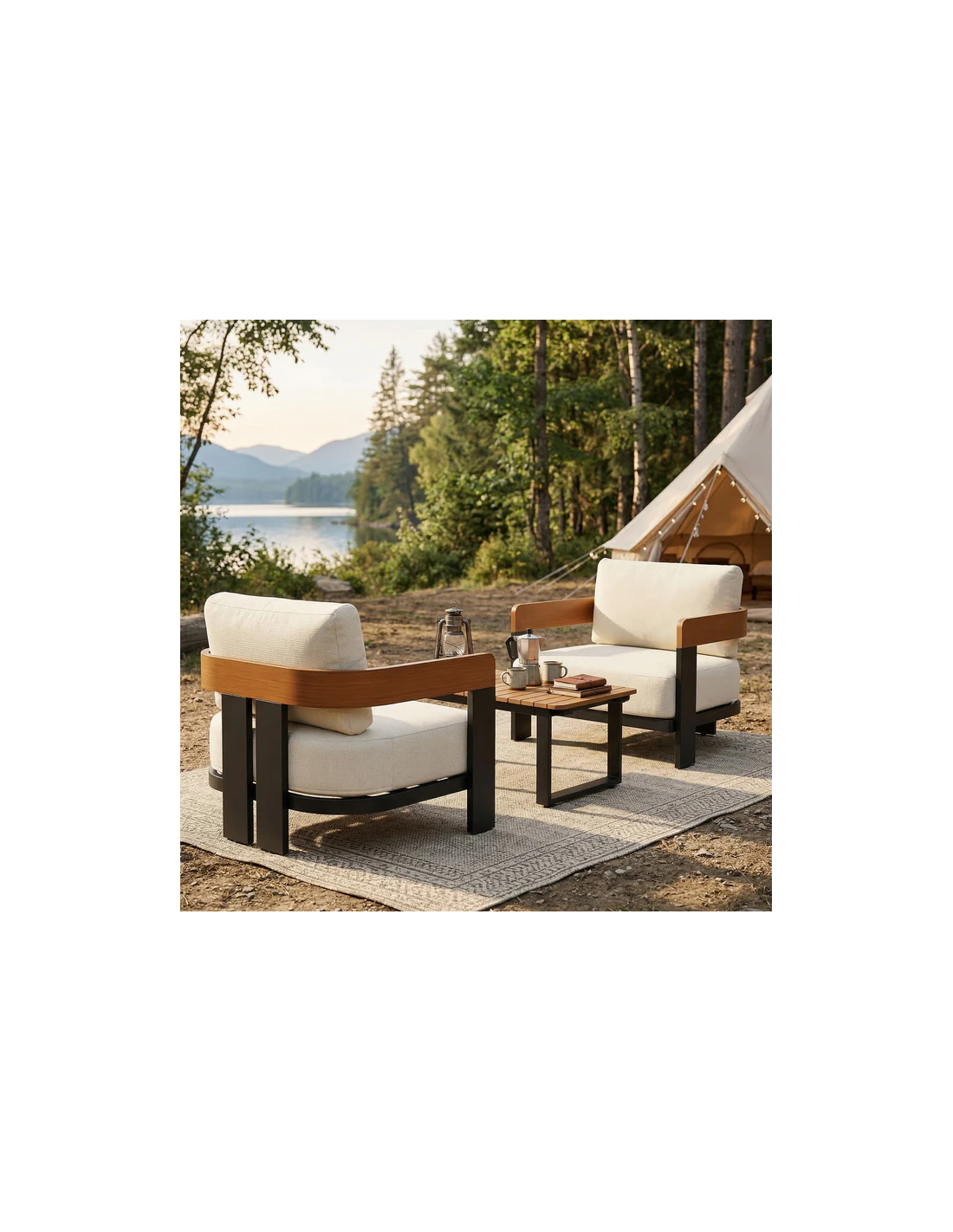 Lounge havestol i aluminium og olefin H80 cm - Mørkegrå/Beige
