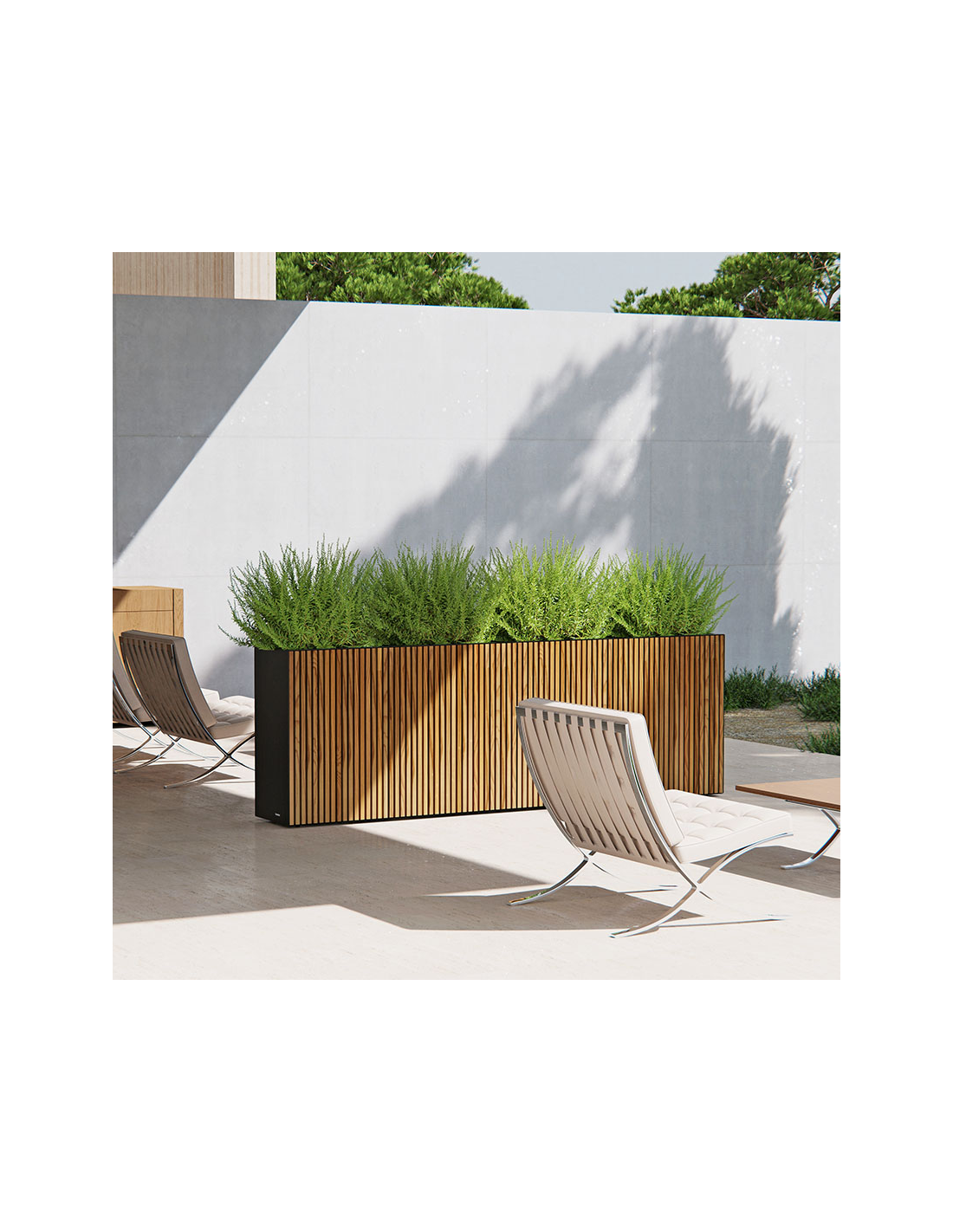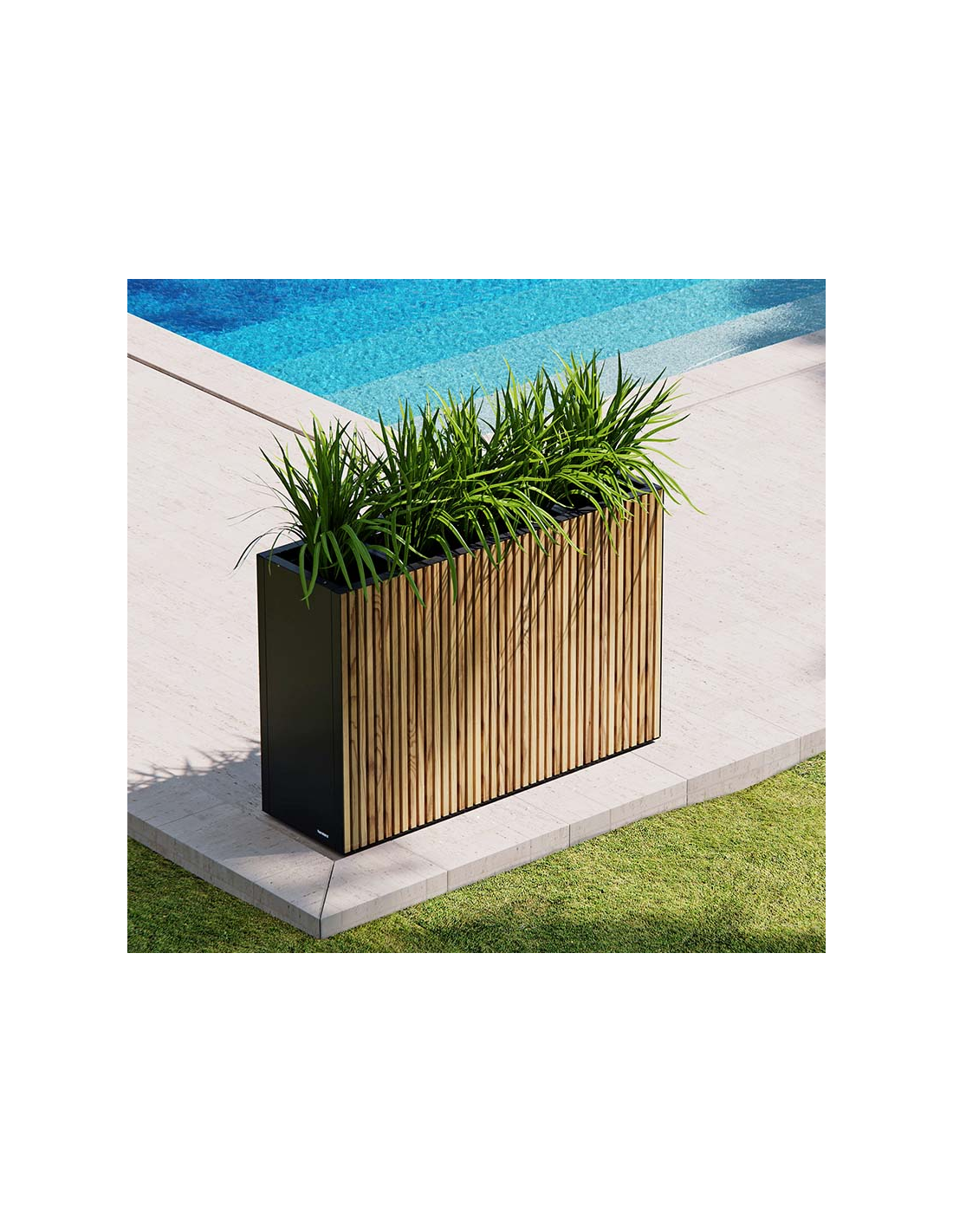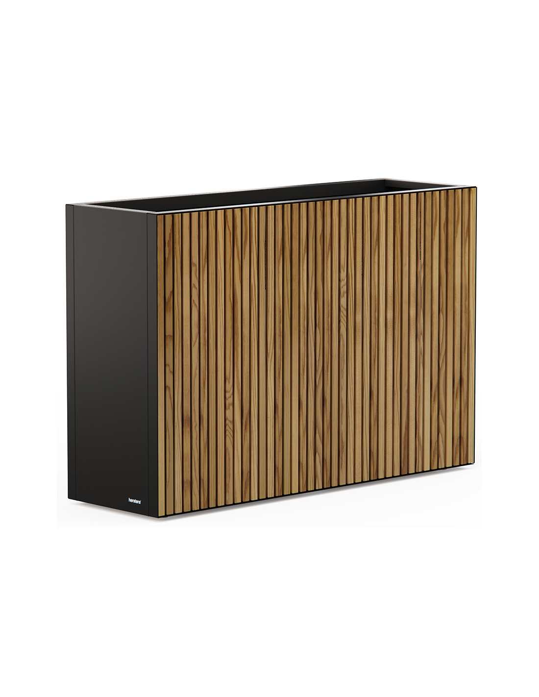 Højbed fra Herstera Garden, fremstillet i et moderne og nordisk design af antracit pulverlakeret stål, der er både rust- og vejrbestandigt. På den ene langside findes naturfarvet fyrretræ. Højbedet er med bund med drænhuller og måler 80 cm i højden og 120 x 40 cm i bredde og dybde.
