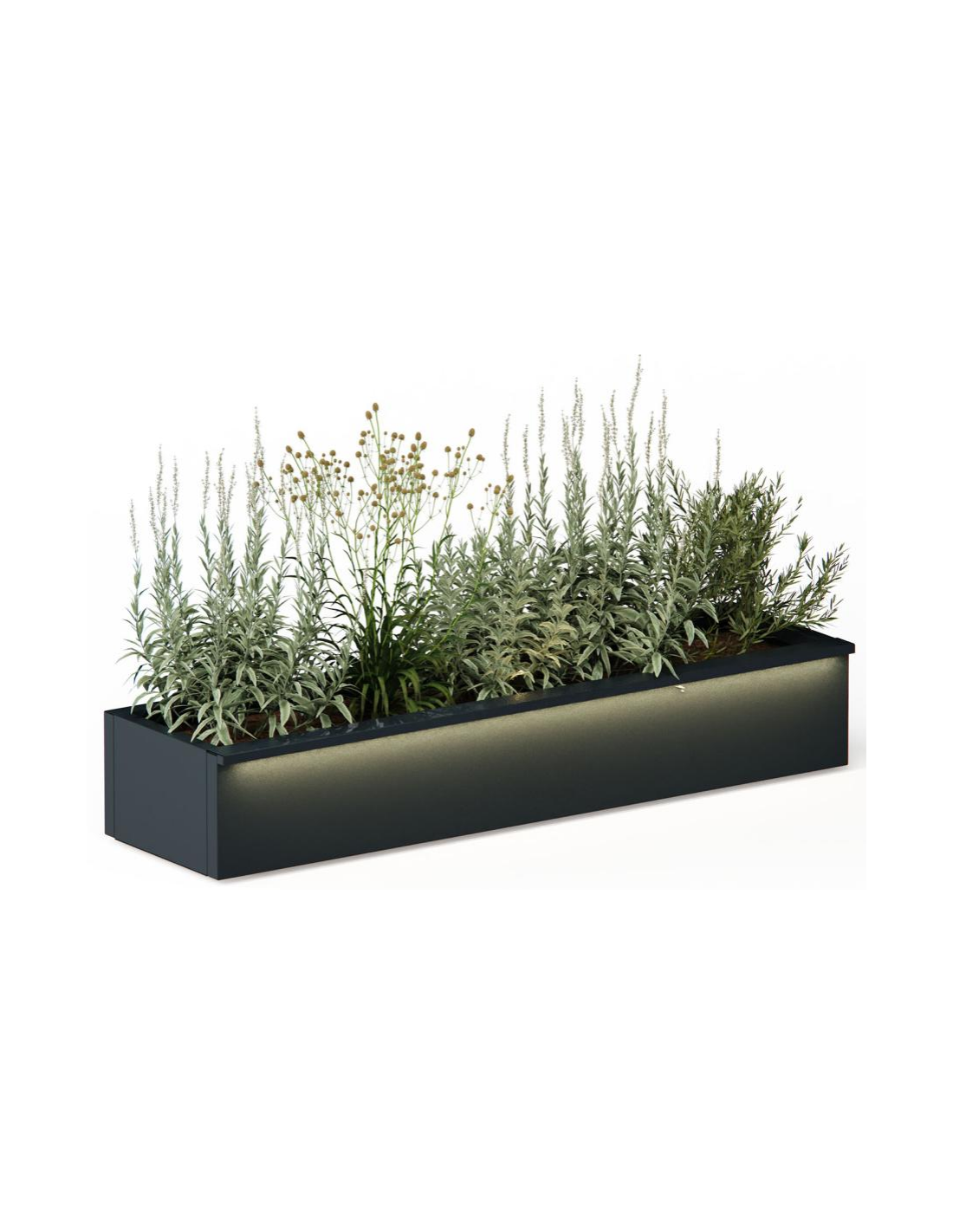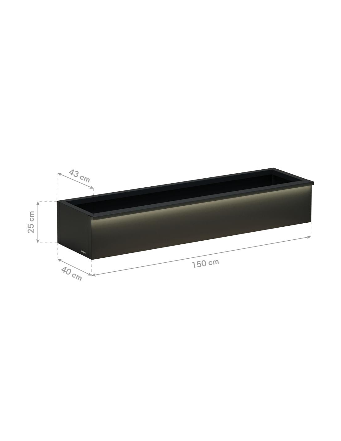 Højbed med LED lys fra Herstera Garden, fremstillet i et moderne og nordisk design af antracit pulverlakeret stål, der er både rust- og vejrbestandigt. Højbedet er med bund med drænhuller og måler 25 cm i højden og 150 x 43 cm i bredde og dybde. Højbedet kommer med 2 x LED lyskilder som er med IP67 beskyttelsesgrad og kablerne (2 stk.) måler 350 cm i længden. Let og udførlig montering med vejledning.