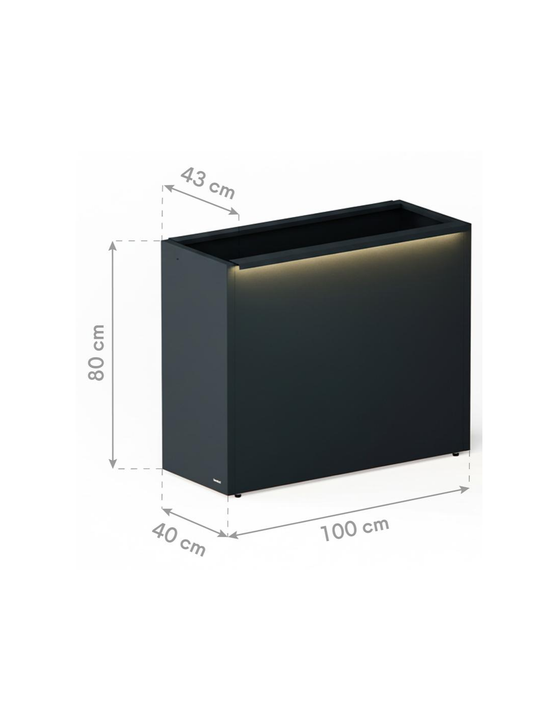 Højbed med LED lys fra Herstera Garden, fremstillet i et moderne og nordisk design af antracit pulverlakeret stål, der er både rust- og vejrbestandigt. Højbedet er med bund med drænhuller og måler 80 cm i højden og 100 x 43 cm i bredde og dybde. Højbedet kommer med LED lyskilde som er med IP67 beskyttelsesgrad og kablet måler 350 cm i længden. Let og udførlig montering med vejledning.