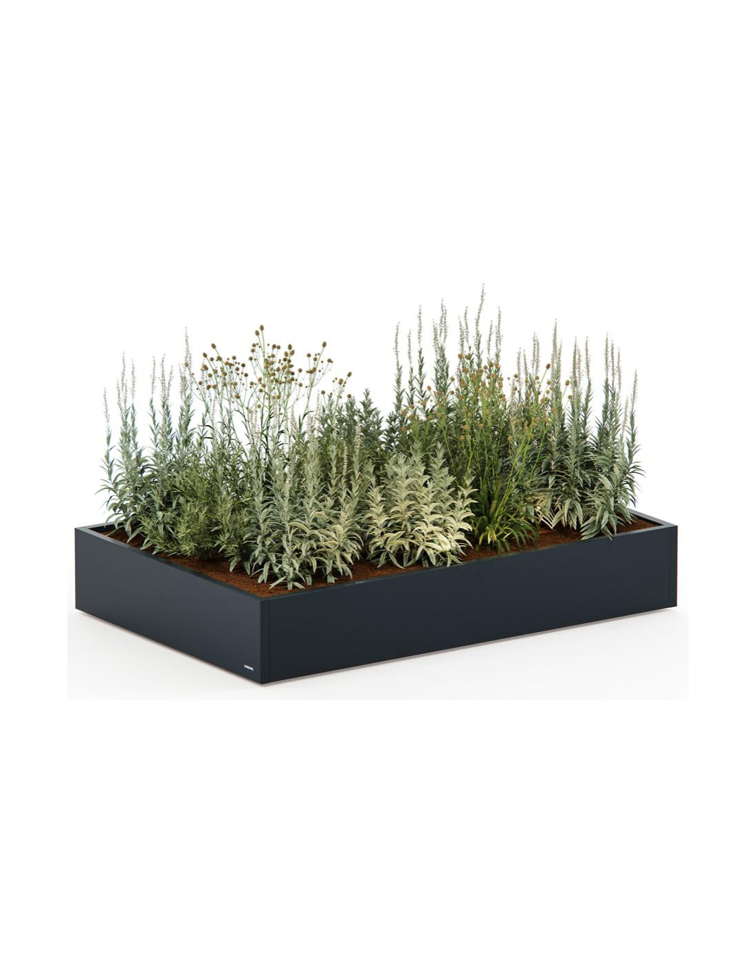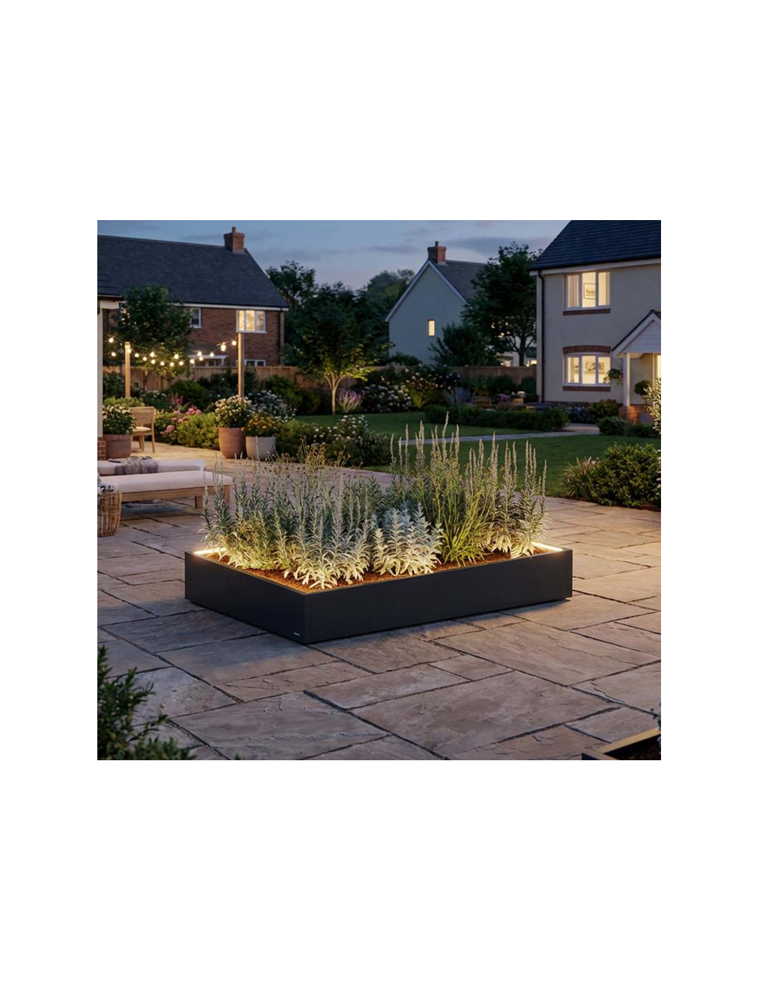 Højbed med LED lys fra Herstera Garden, fremstillet i et moderne og nordisk design af antracit pulverlakeret stål, der er både rust- og vejrbestandigt. Højbedet er uden bund og måler 25 cm i højden og 100 x 150 cm i bredde og dybde. Højbedet kommer med 2 x LED lyskilder som er med IP67 beskyttelsesgrad og kablerne (2 stk.) måler 350 cm i længden. Let og udførlig montering med vejledning.