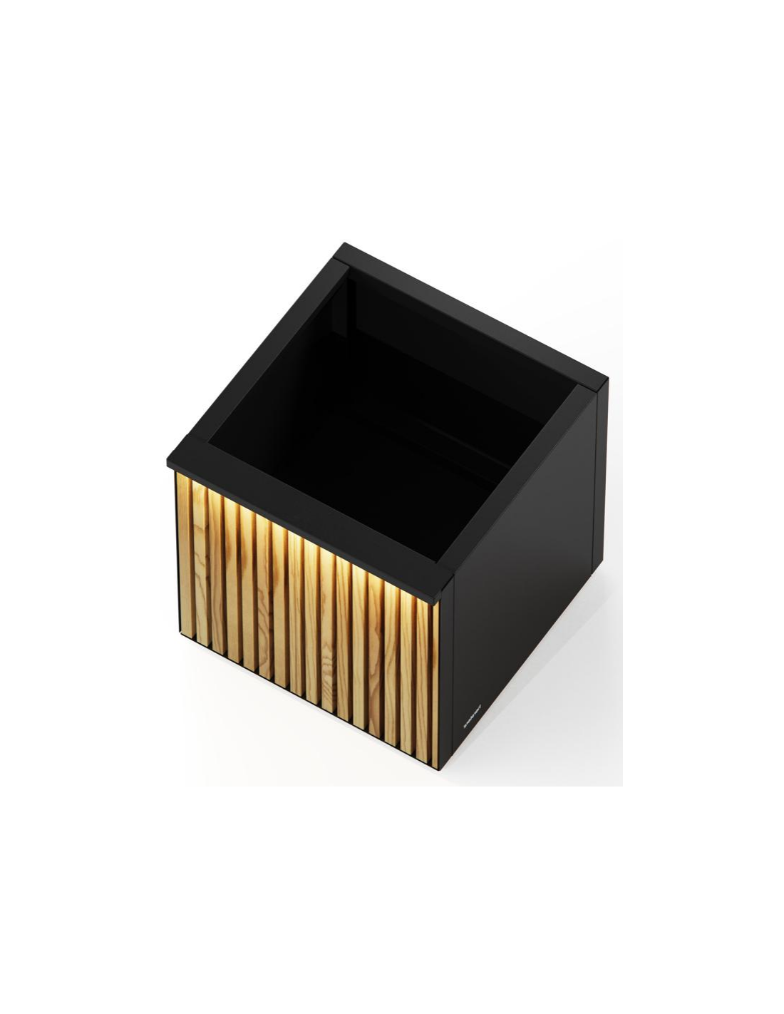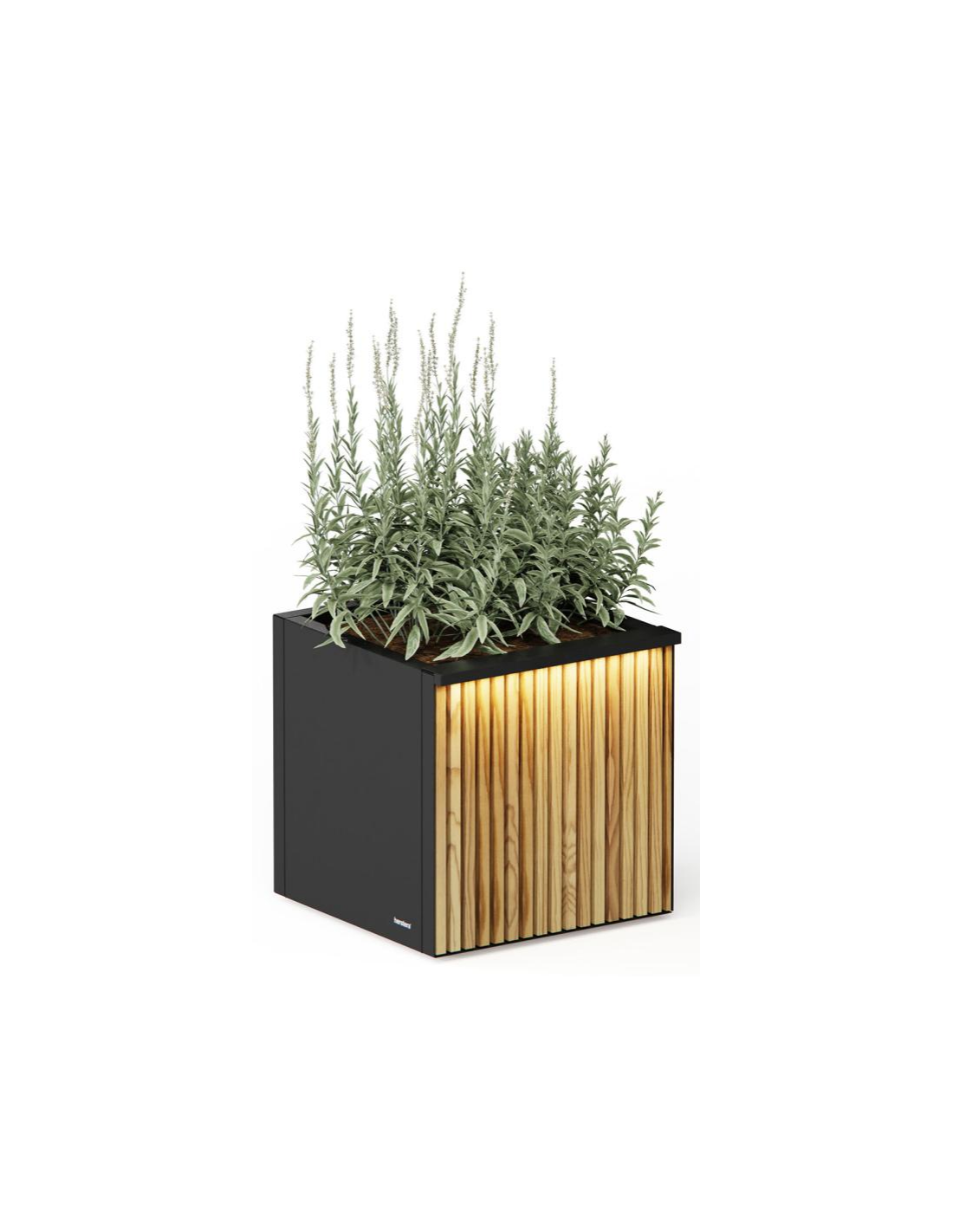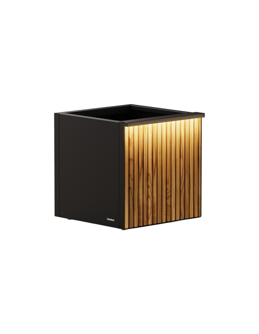 Herstera CUBE Højbed med LED lys i stål og fyrretræ H50 x B50 x D53 cm - Antracit/Natur