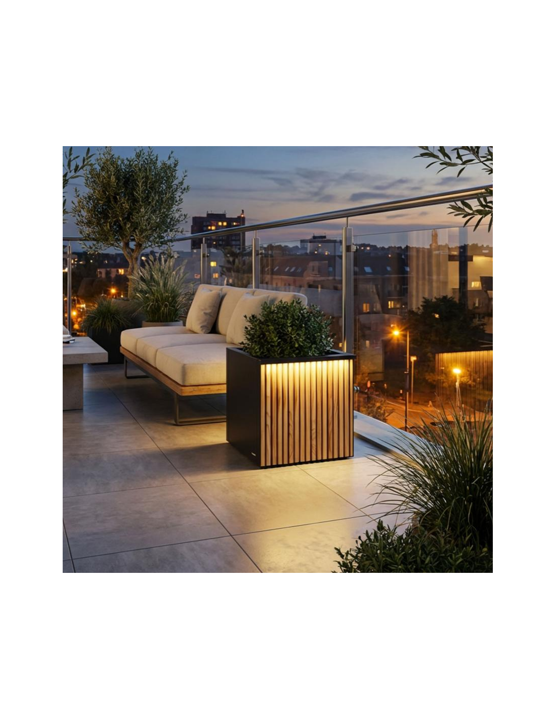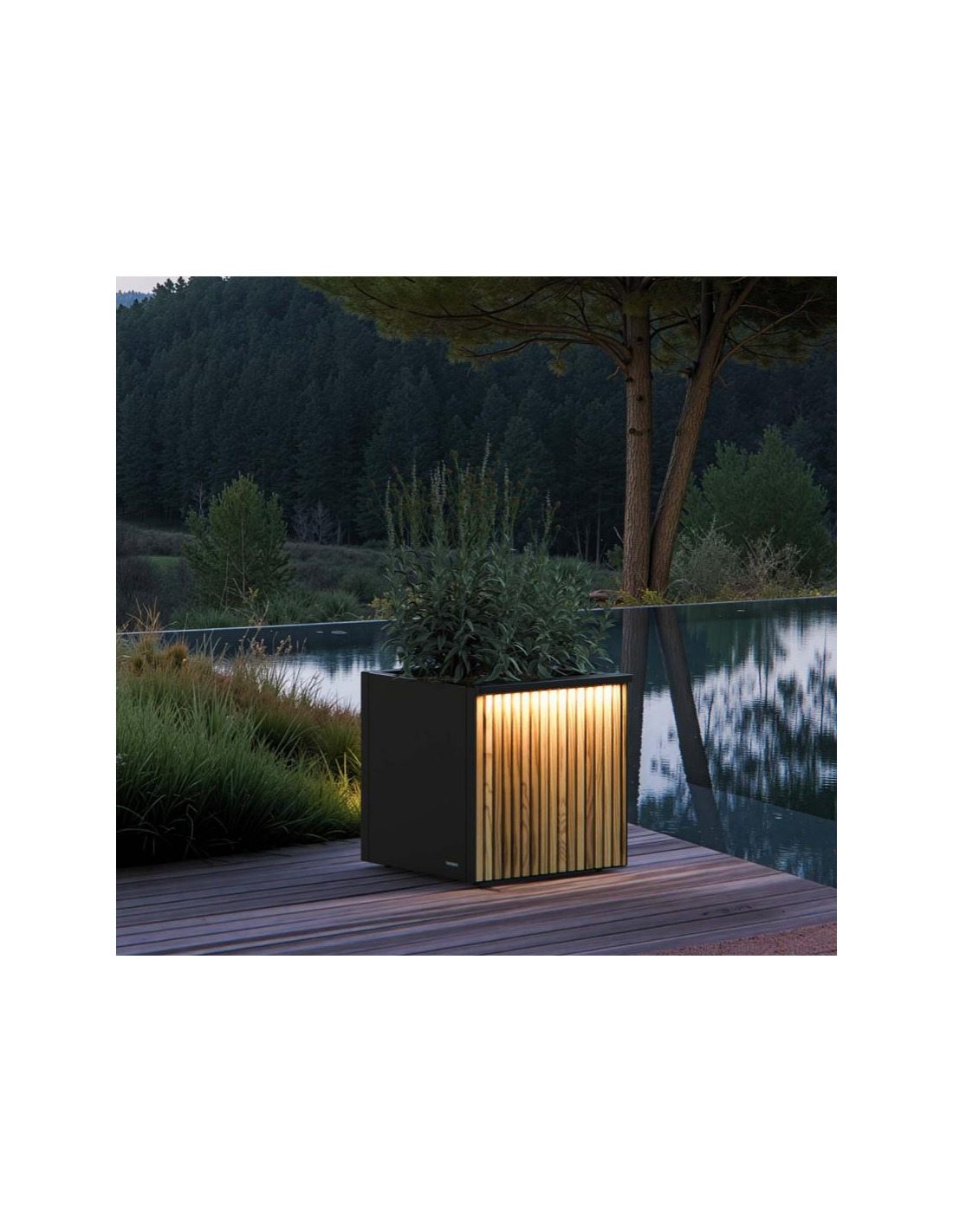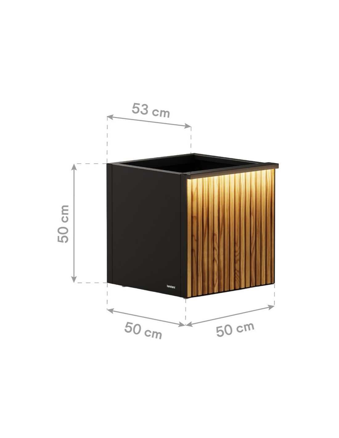 Herstera CUBE Højbed med LED lys i stål og fyrretræ H50 x B50 x D53 cm - Antracit/Natur