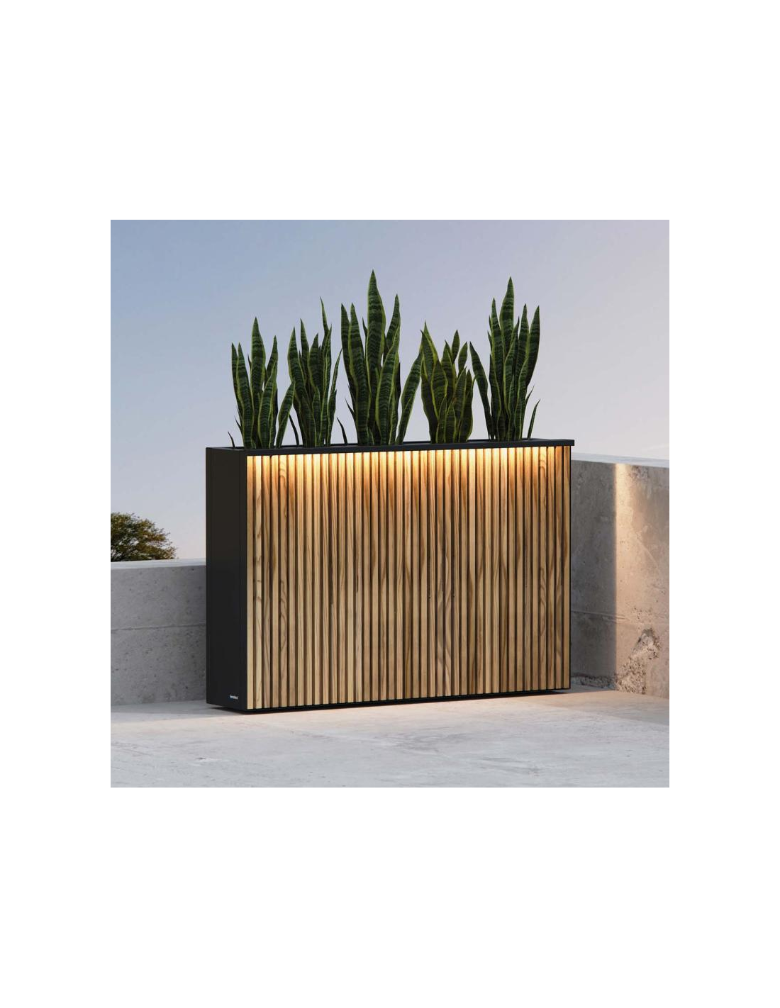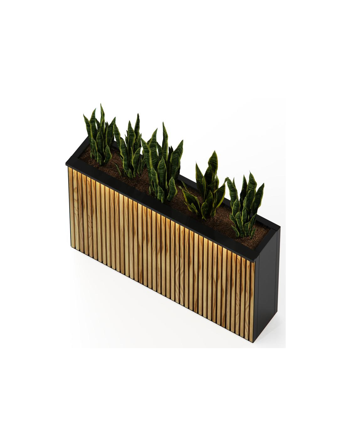 Herstera XIC Højbed med LED lys i stål og fyrretræ H80 x B120 x D28 cm - Antracit/Natur