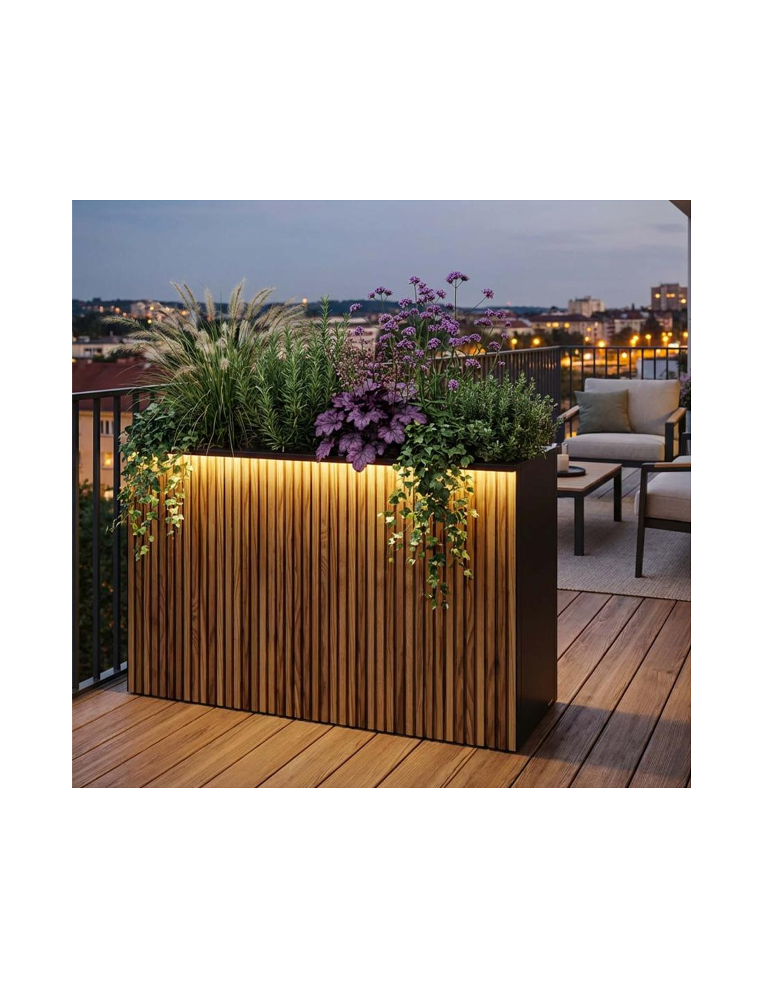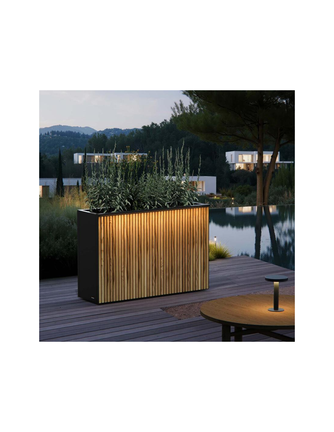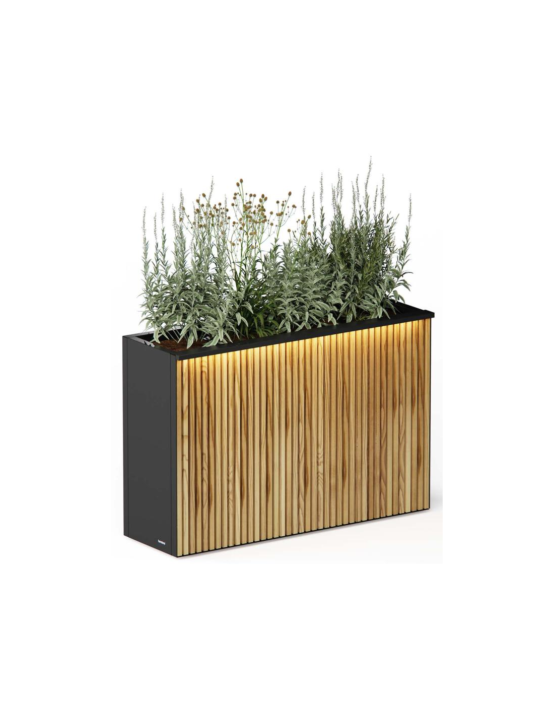 Herstera XIC Højbed med LED lys i stål og fyrretræ H80 x B120 x D43 cm - Antracit/Natur