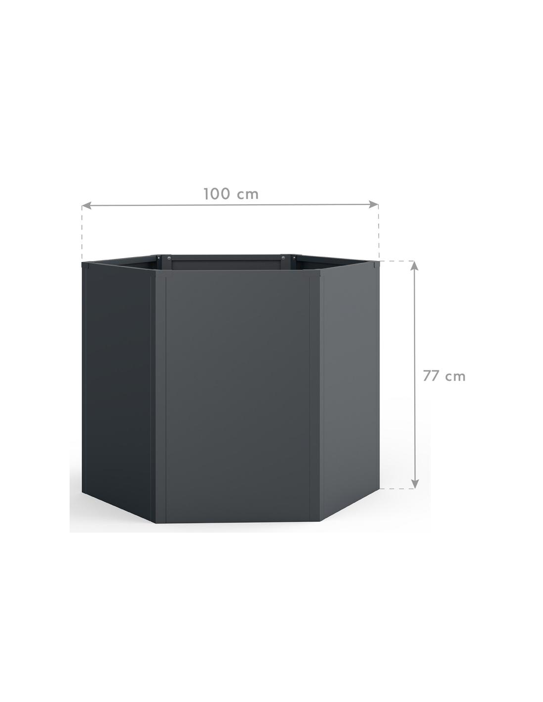 WESTMANN Højbed fremstillet i et moderne og nordisk design af antracit pulverlakeret stål, der er både rust- og vejrbestandigt. Højbedet er uden bund og måler 77 cm i højden og 100 x 100 cm i bredde og dybde. Let og udførlig montering med vejledning.