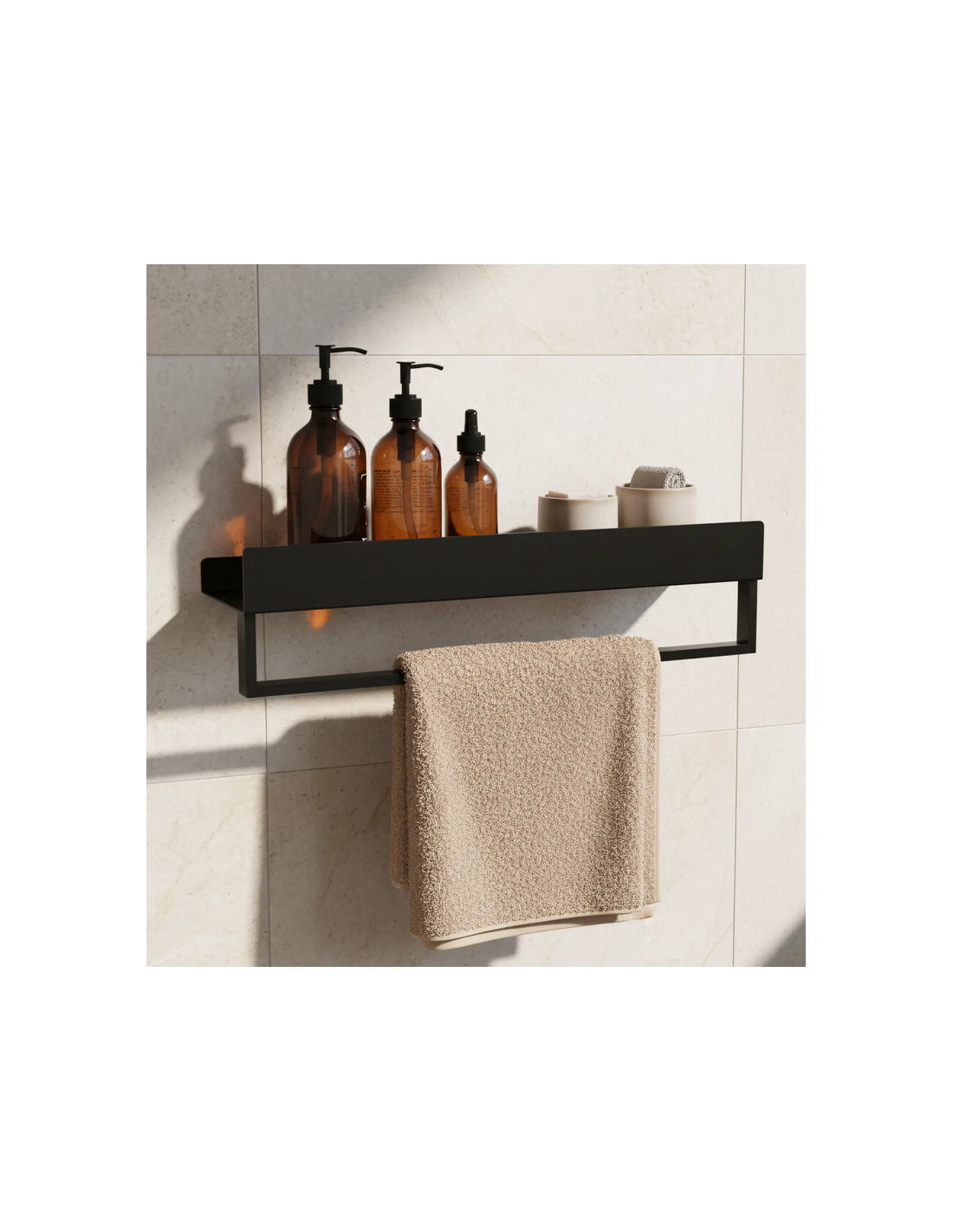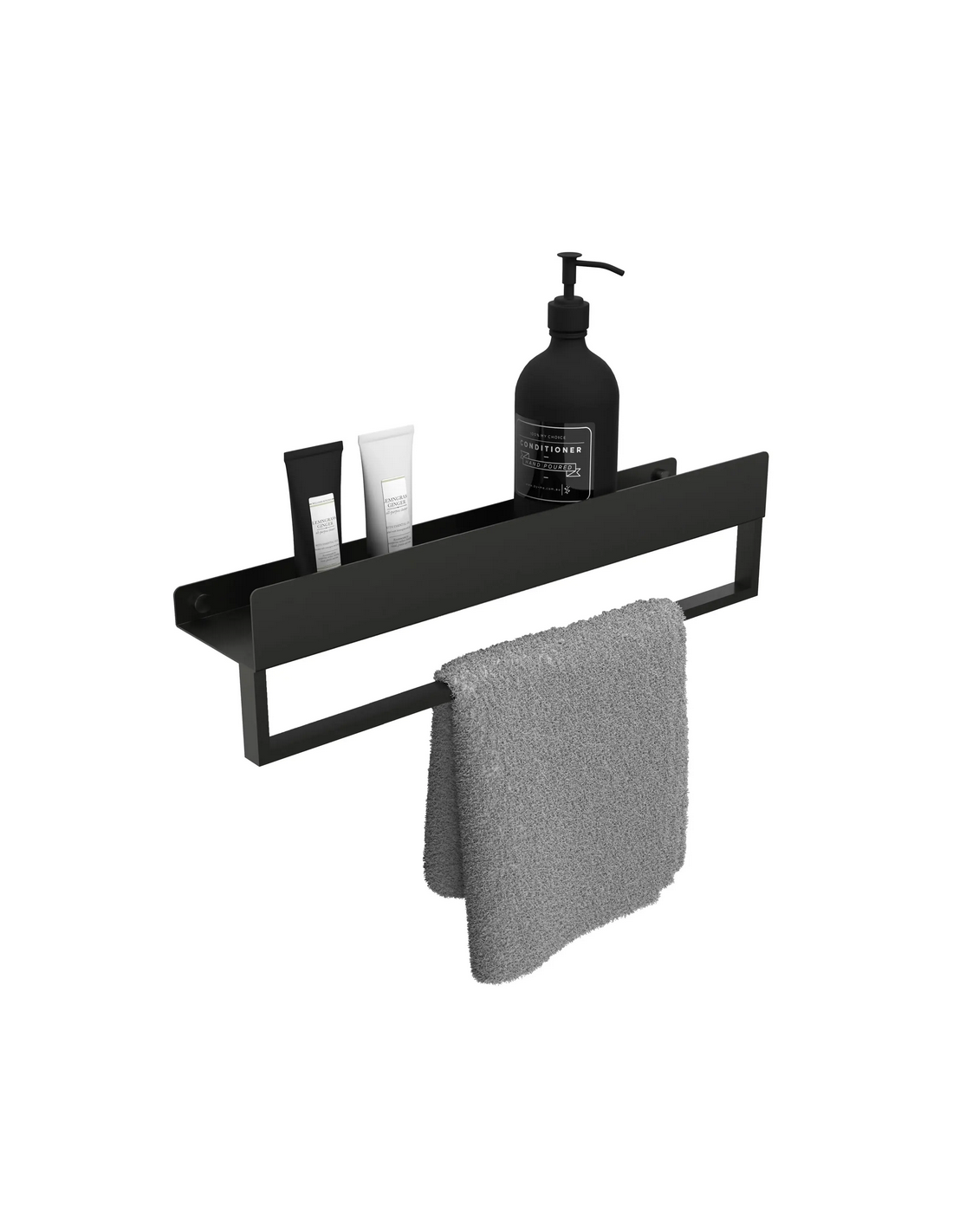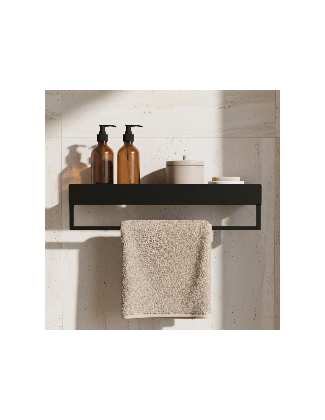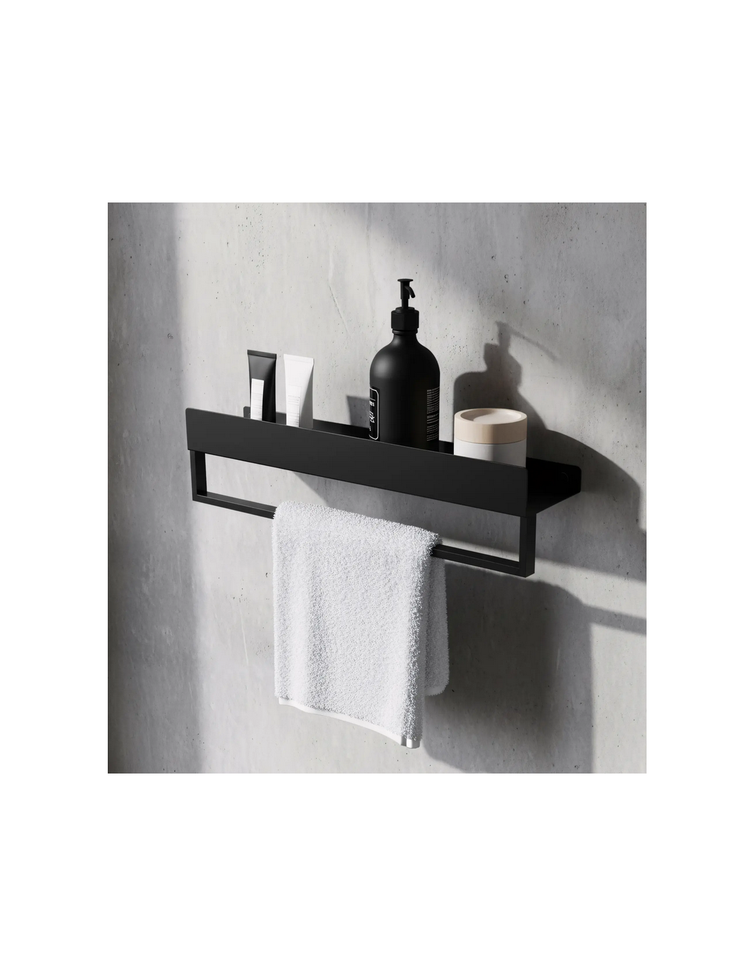 Hylde med håndklædestang i rustfri stål B45 cm - Mat sort