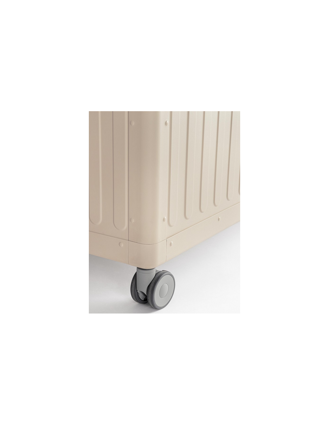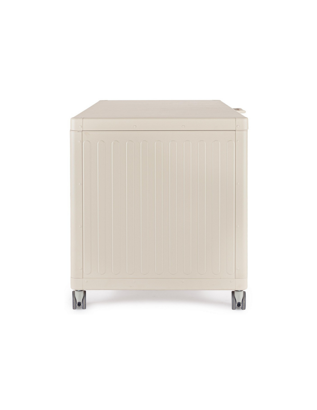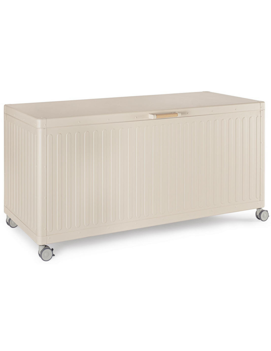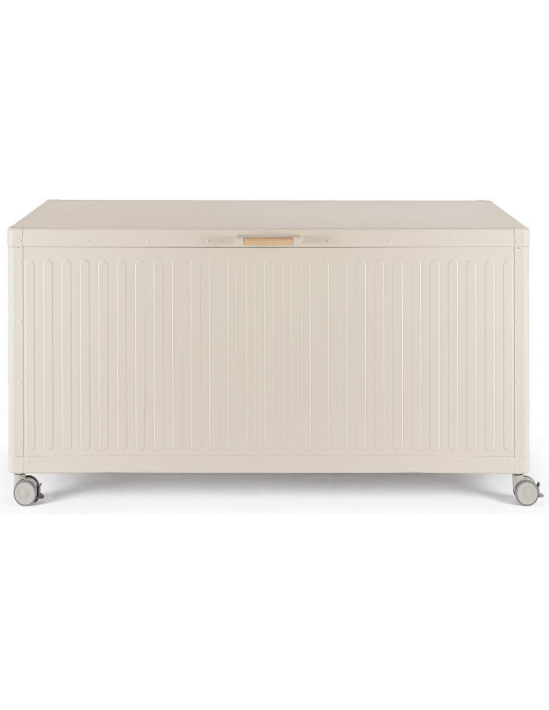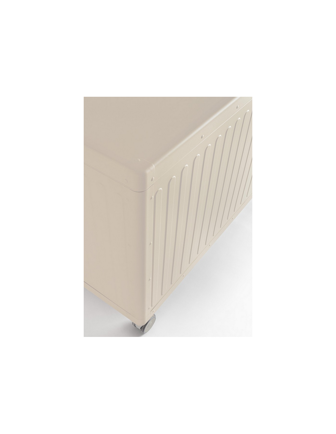 OCEAN Hyndeboks udført i et stilrent design af beige pulverlakeret aluminium og galvaniseret stål. Hyndeboksen måler 70 cm i højden og 141,6 x 72 cm i bredde og dybde.