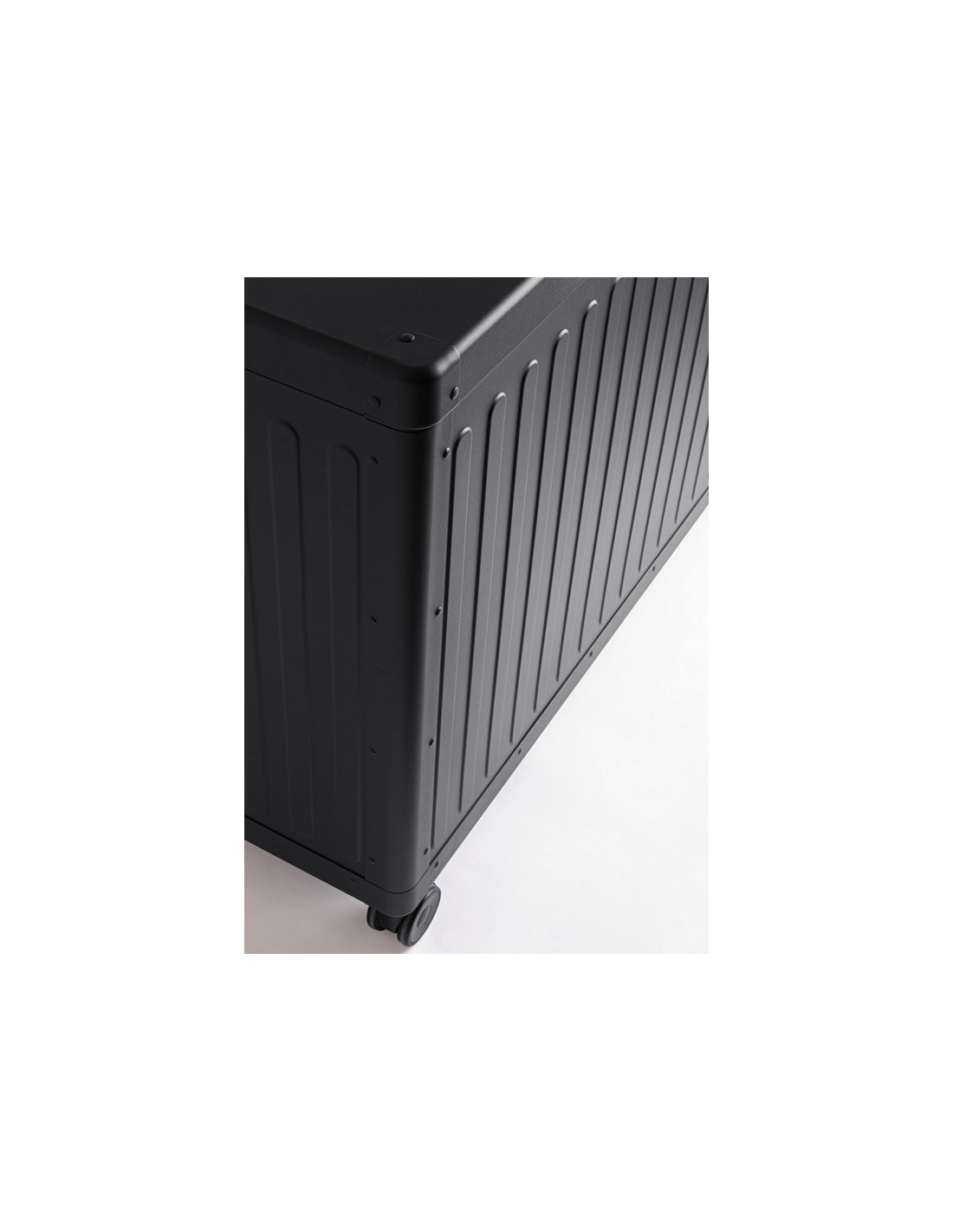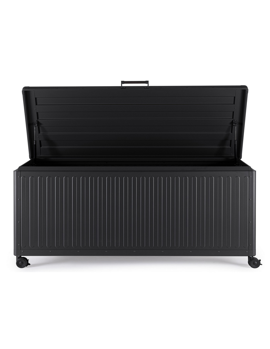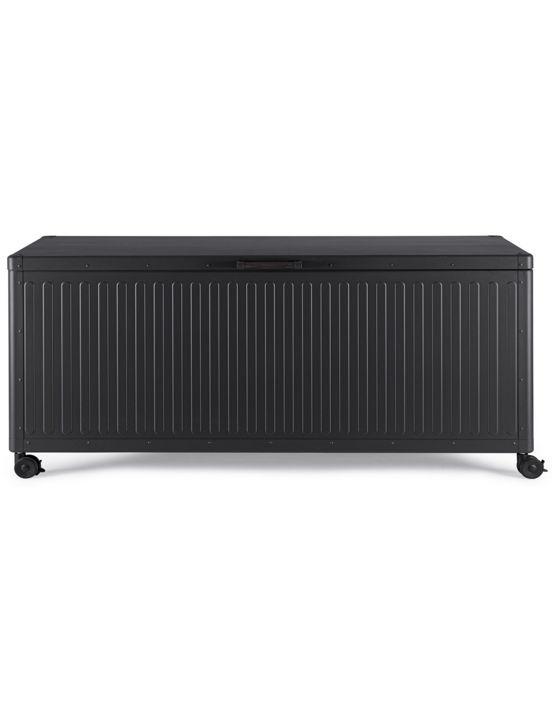 OCEAN Hyndeboks udført i et stilrent design af charcoal farvet pulverlakeret aluminium og galvaniseret stål. Hyndeboksen måler 70 cm i højden og 182 x 89,4 cm i bredde og dybde.