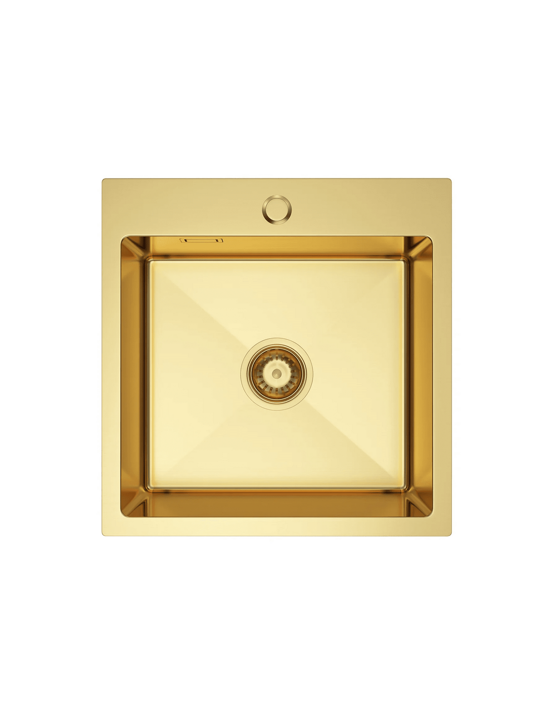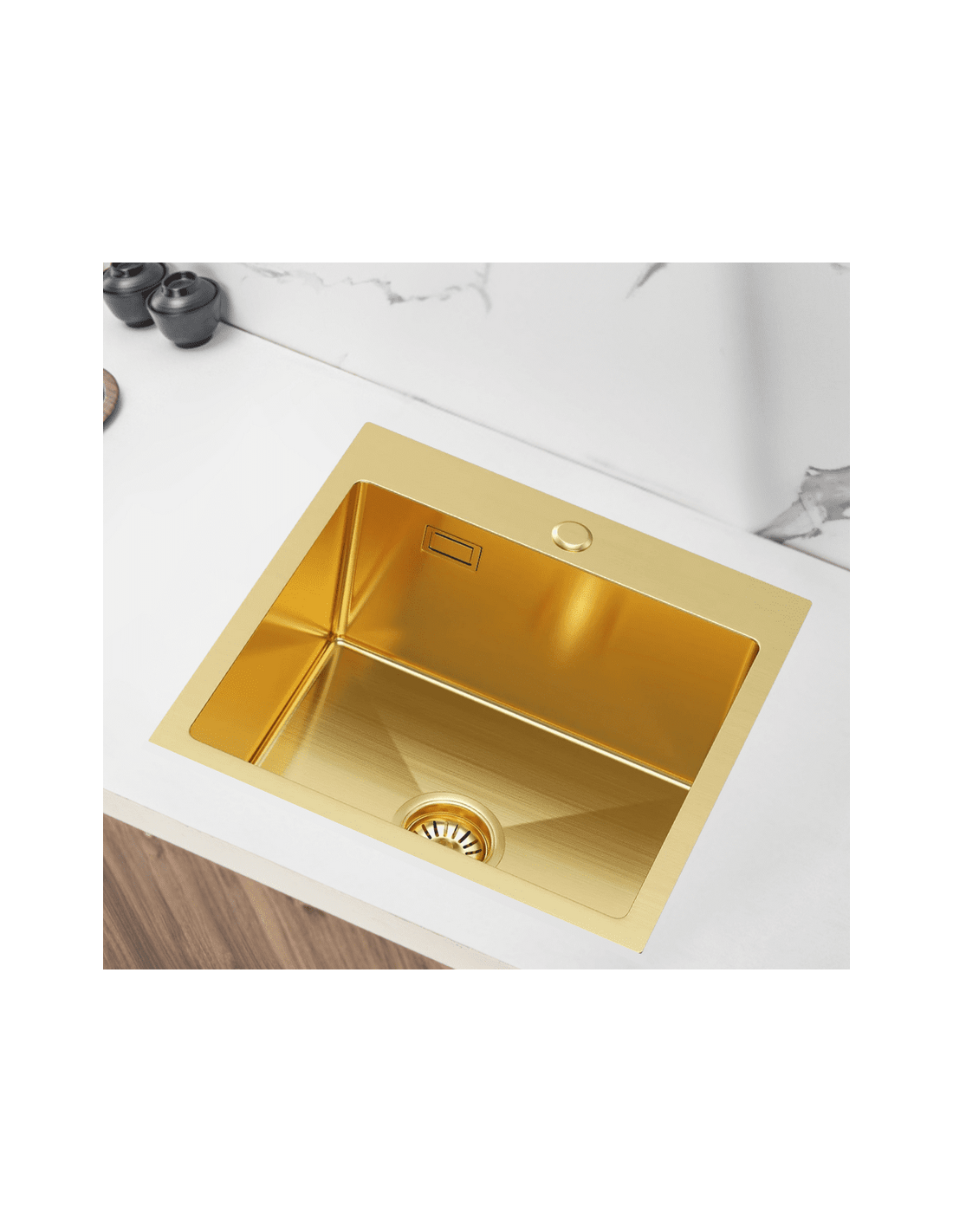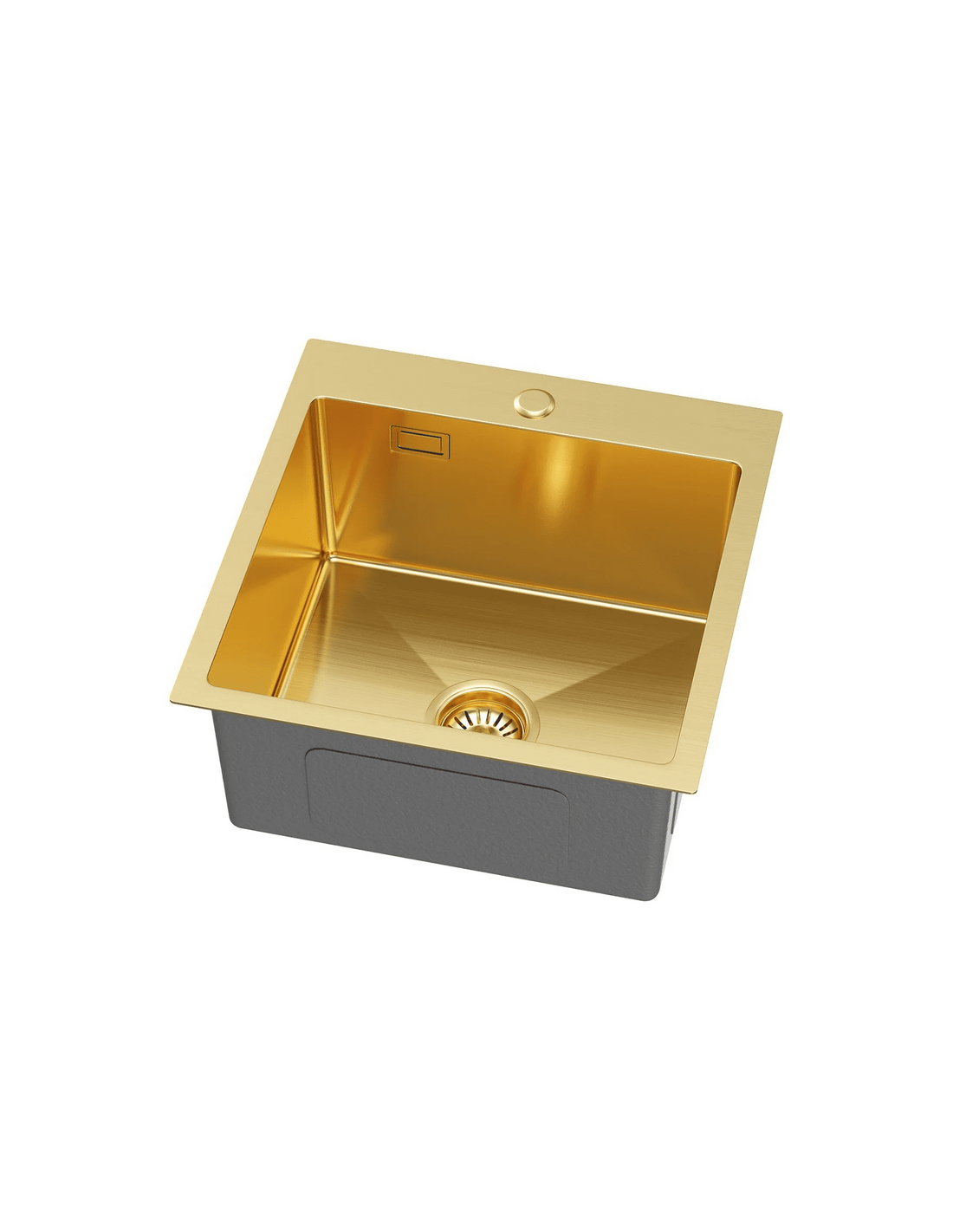Køkkenvask i rustfri stål med afløb og hanehul 46 x 45 cm - Satineret guld