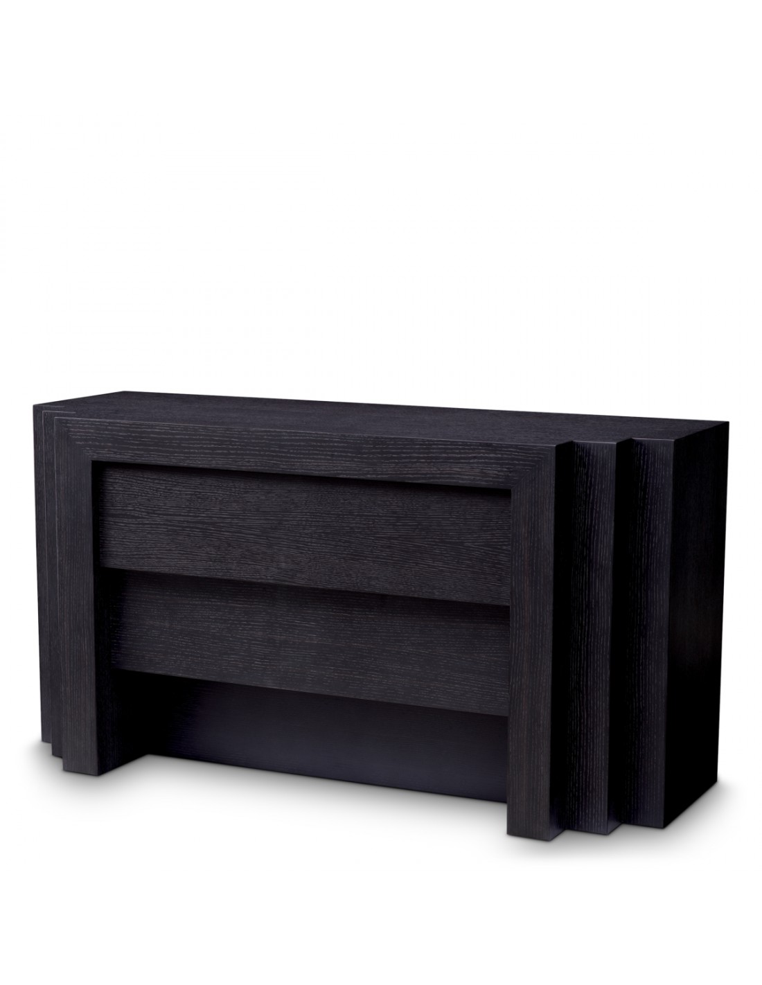 Eichholtz Metropolitan kommode udført i et luksuriøst og moderne design, fremstillet af kulgrå egetræsfinér med 2 skuffer med push-to-open funktion. Kommoden måler 70,5 cm i højden og 134 x 50 cm i bredde og dybde.