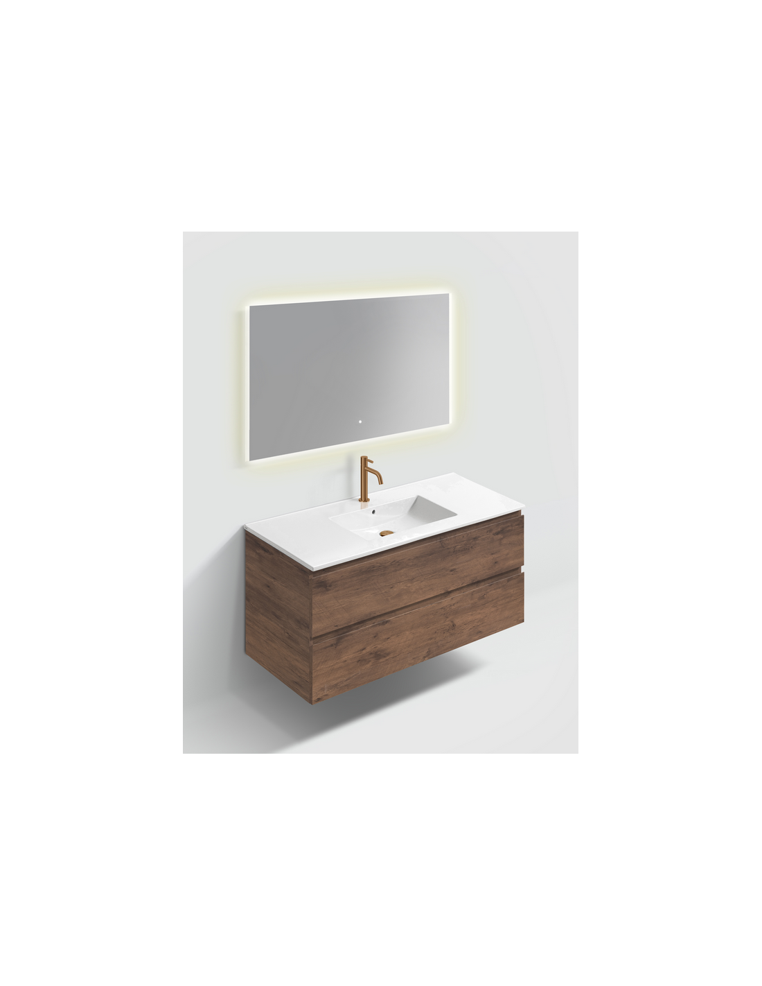 INBE Komplet badmiljø med spejl i melamin og keramik H61,8 x B121 cm - Mørk eg