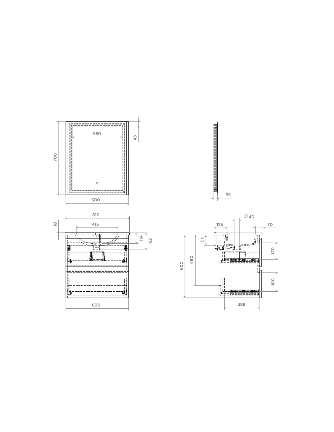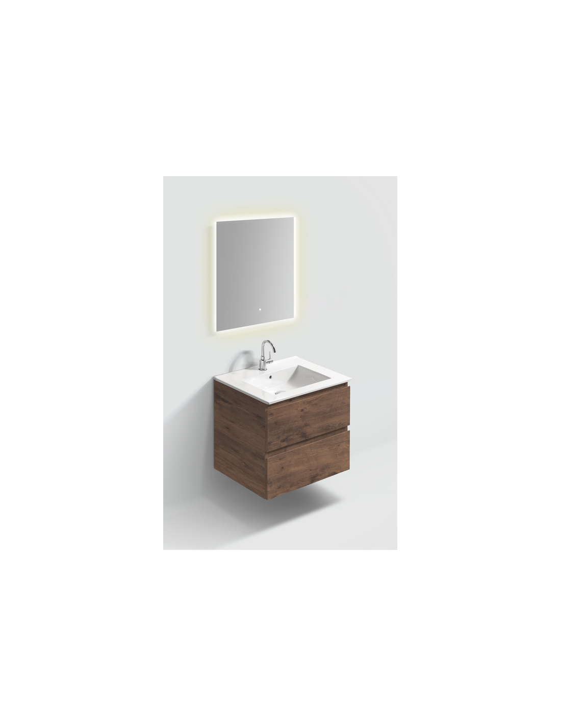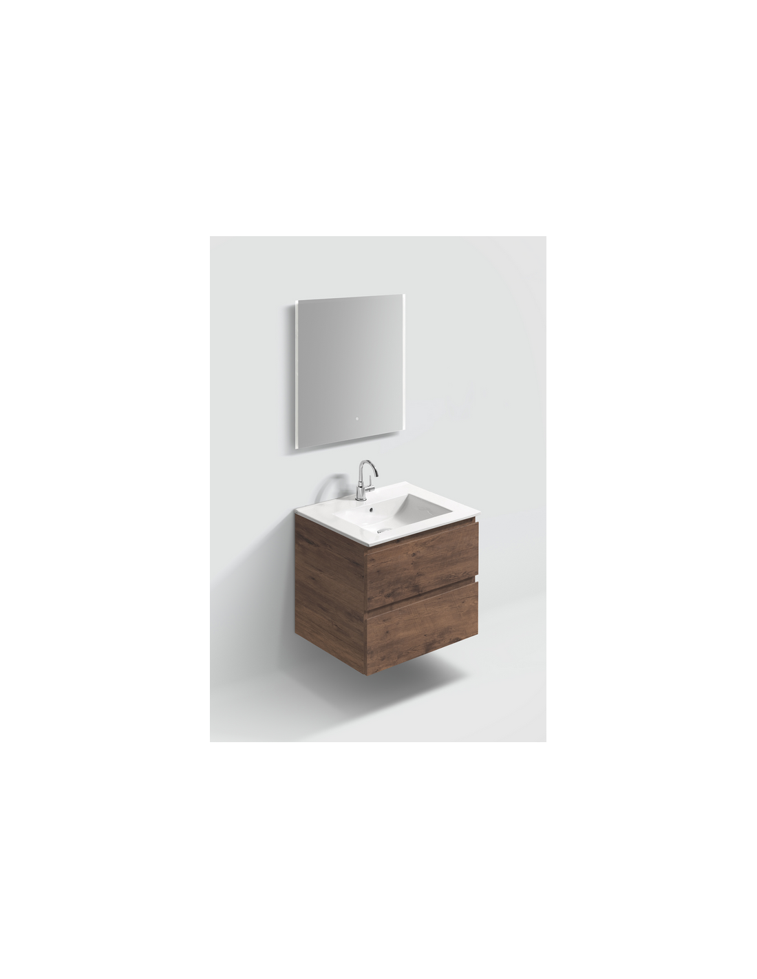INBE Komplet badmiljø med spejl i melamin og keramik H61,8 x B61 cm - Mørk eg