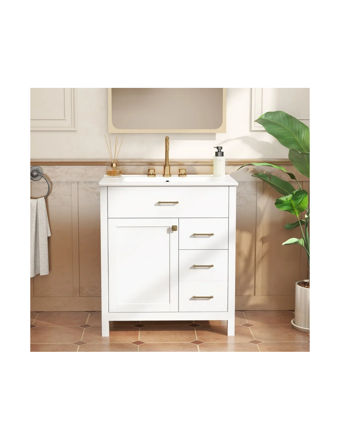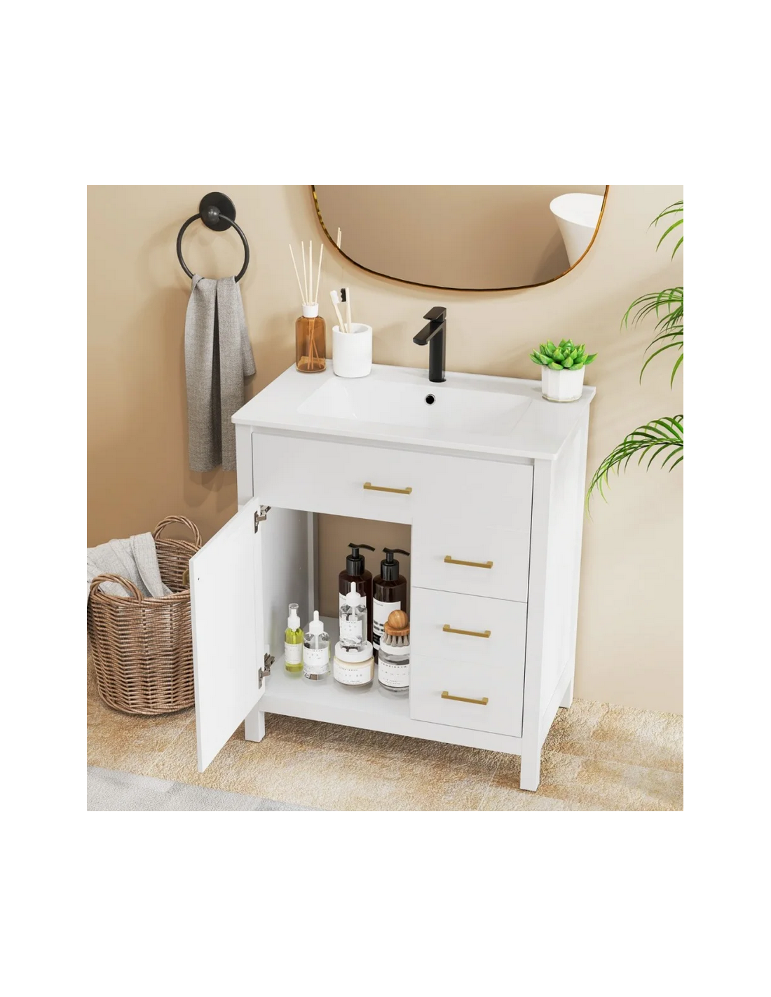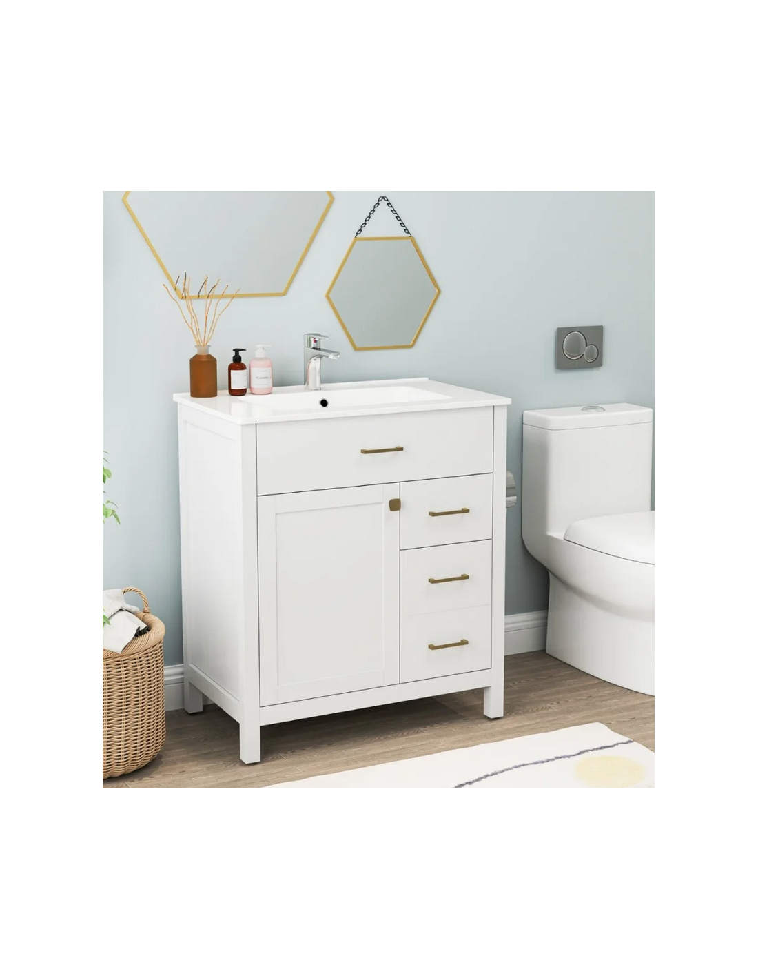 Komplet badmiljø i MDF og keramik H86 x B76 x D46,5 cm - Mat hvid/Hvid