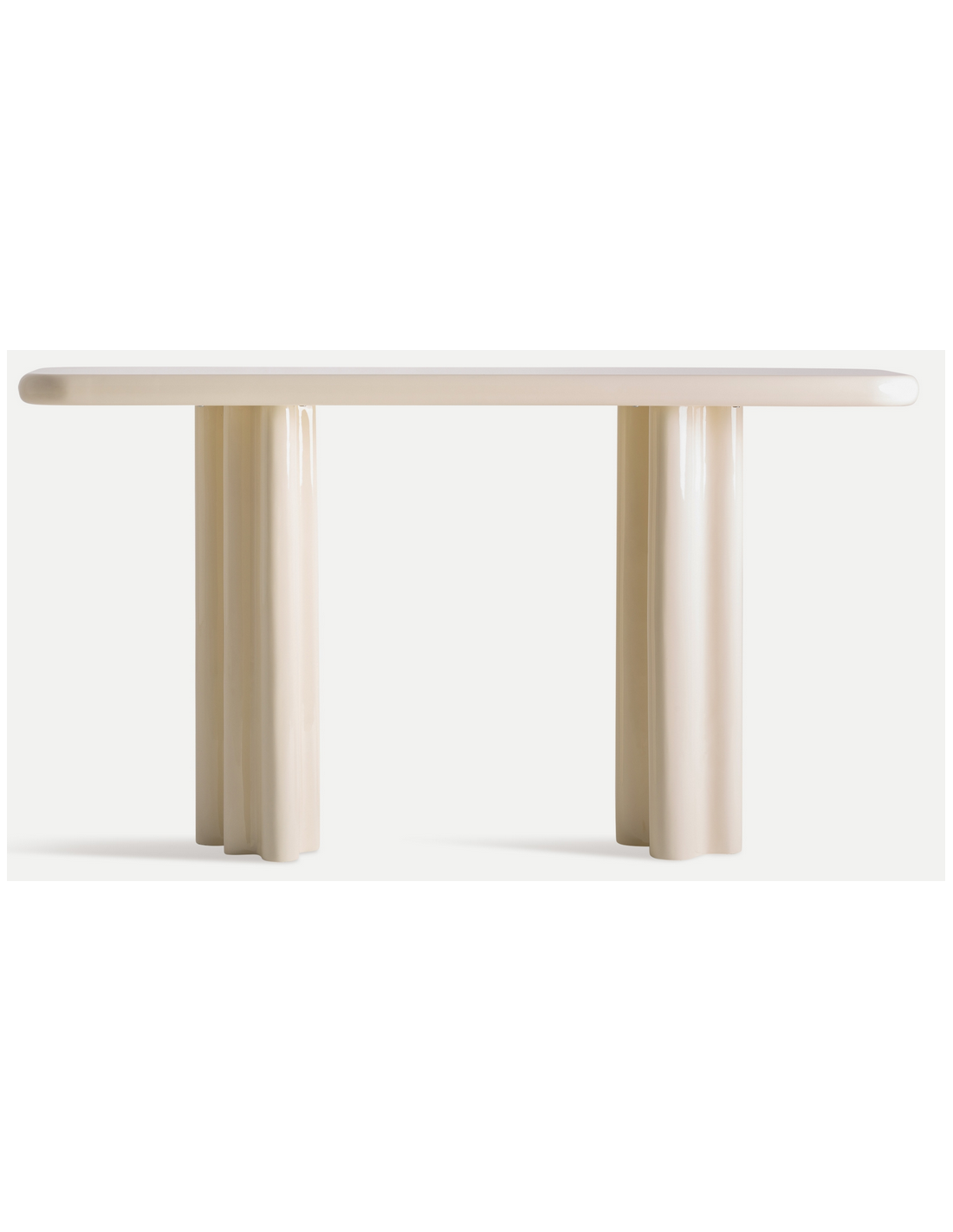 ARKO Konsolbord udført i et moderne design fremstillet af creme højglans MDF. Konsolbordet måler 80 cm i højden og 150 x 40 cm i bredde og dybde.