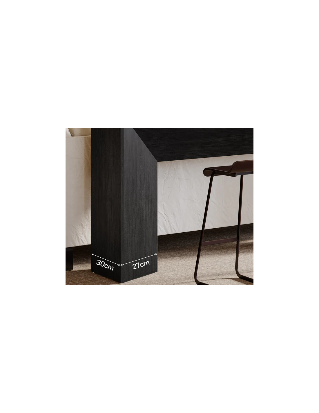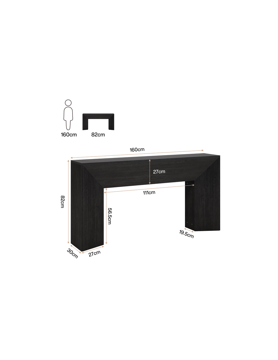 Konsolbord udført i et moderne design af sort møbelplade. Konsolbordet måler 82 cm i højden og 160 x 30 cm i bredde og dybde.