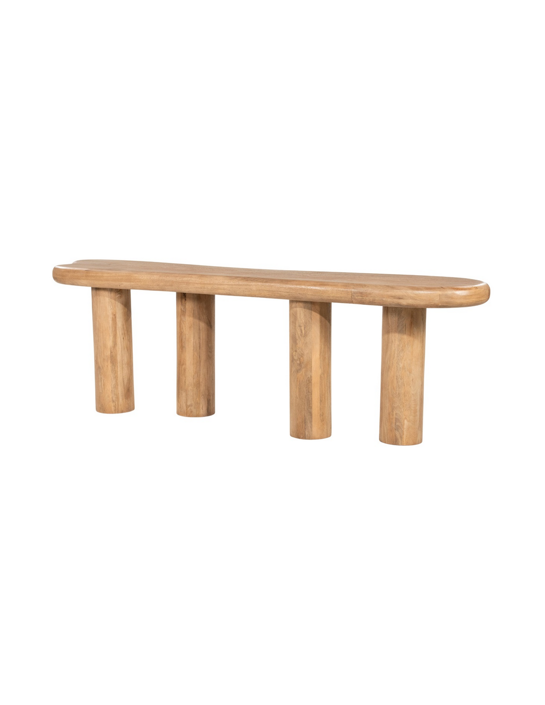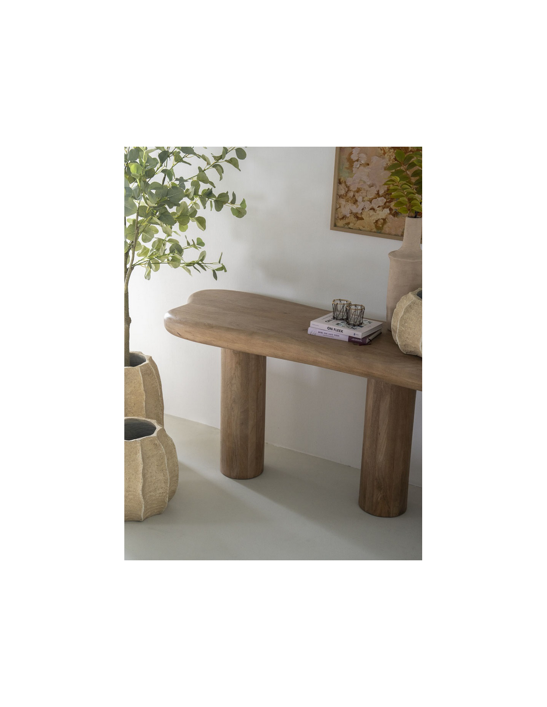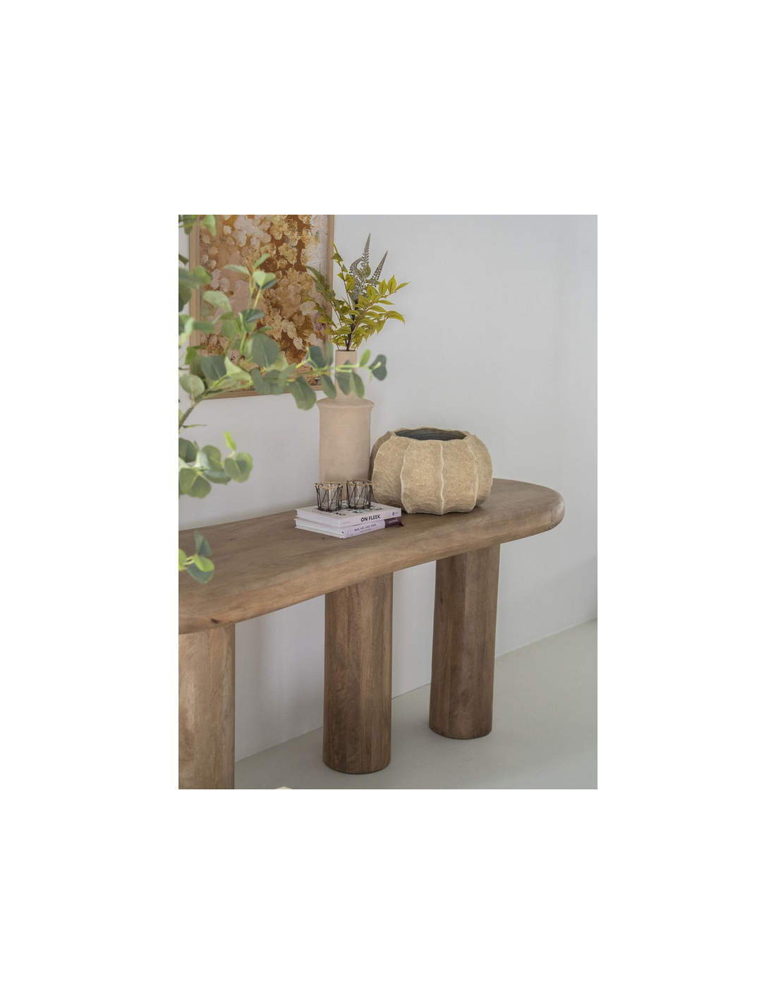 NIGEL Konsolbord udført i et design af naturbrun mangotræ. Konsolbordet måler 76 cm i højden og 240 x 55 cm i bredde og dybde.