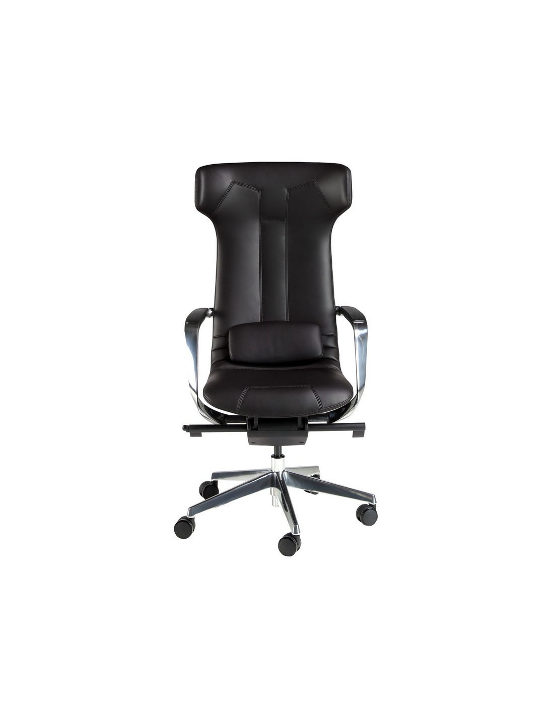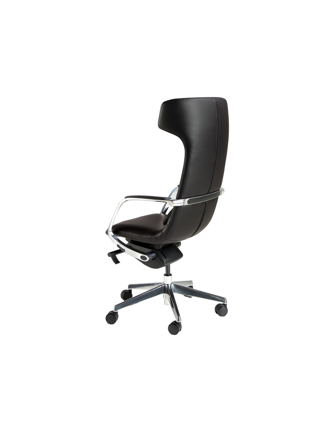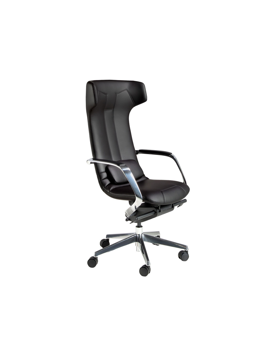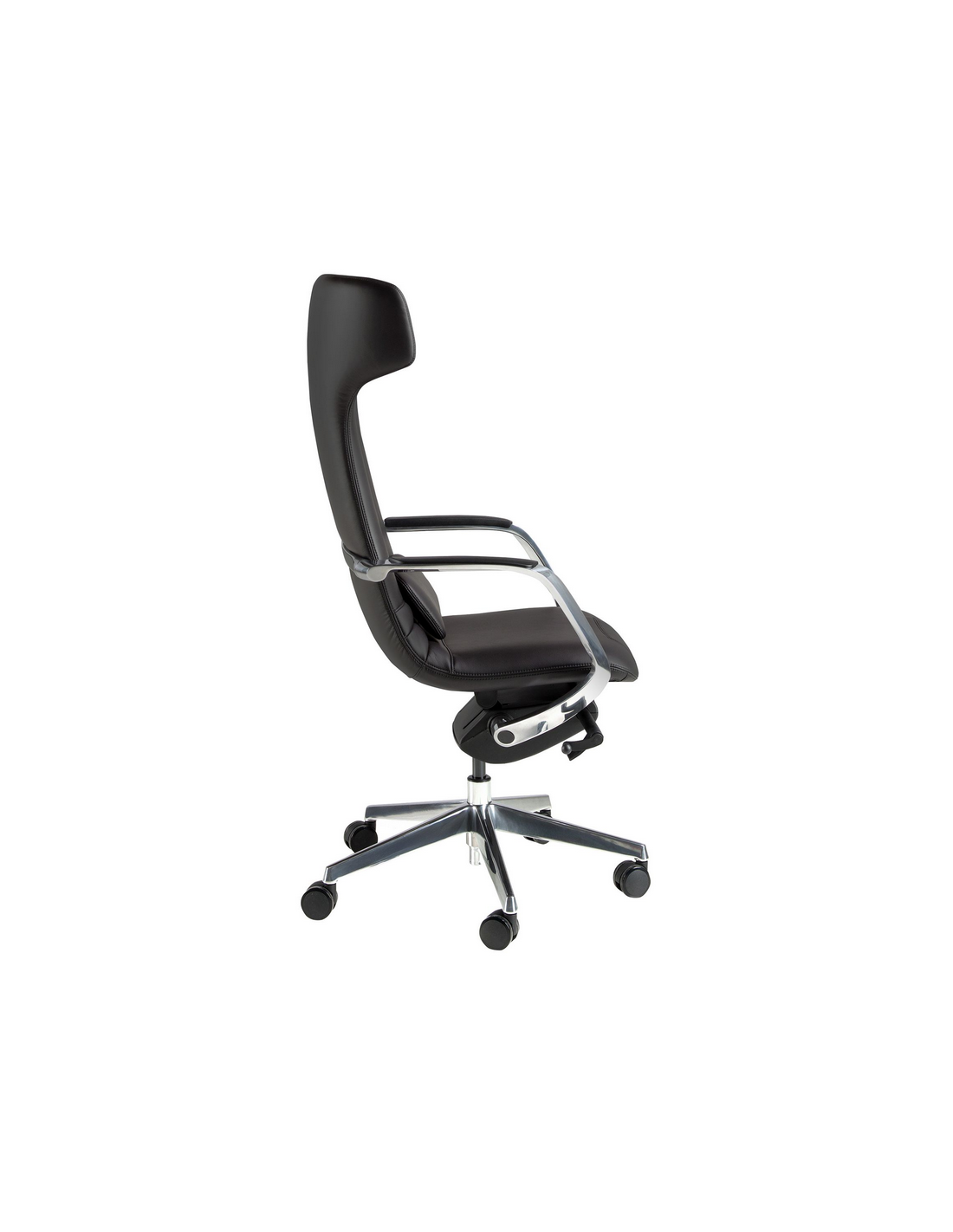 Kontorstol med armlæn udført i et moderne design fra Angel Cerdá. Kontorstolen er fremstillet med stel i kromlakeret stål og sæde i sort vegansk læder (leatherette). Kontorstolen måler 112 - 130 cm i højden over ryggen og har en siddehøjde på 45 - 55 cm.
