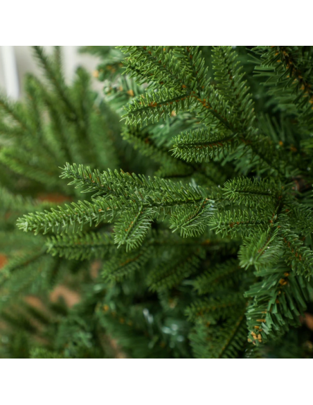 Kunstigt juletræ med naturtro grene. Træet måler cirka 180 cm i højden og 110 cm i diameter og kommer med fod.