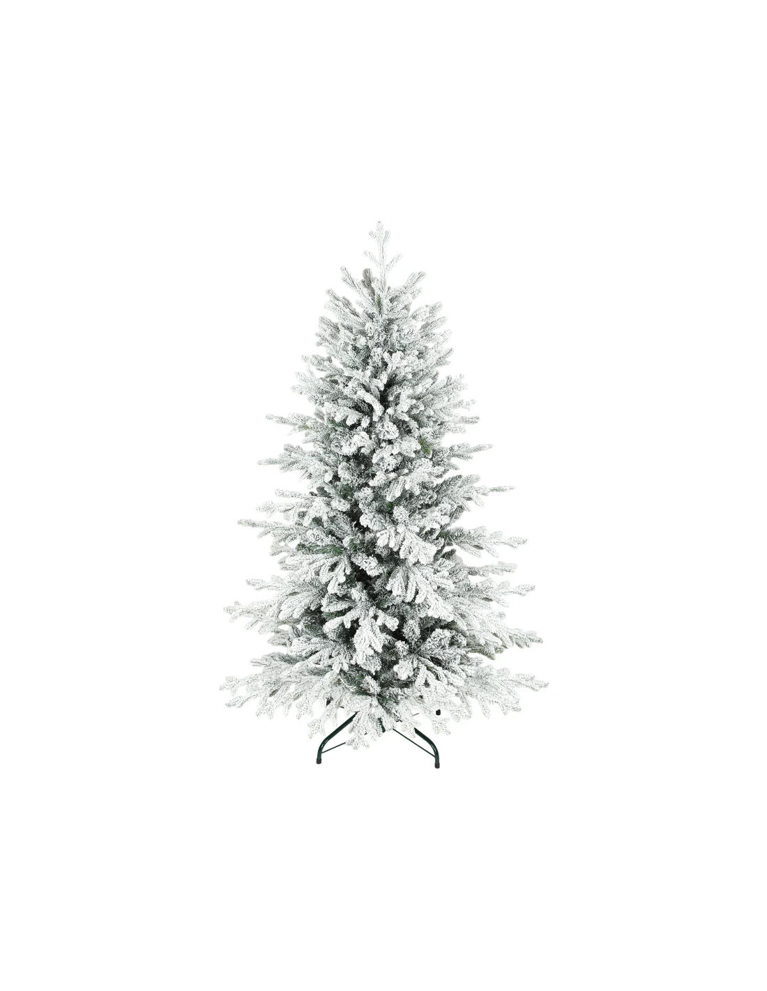 Kunstigt juletræ med naturtro grene med sne. Træet måler cirka 150 cm i højden og 93 cm i diameter og kommer med fod.