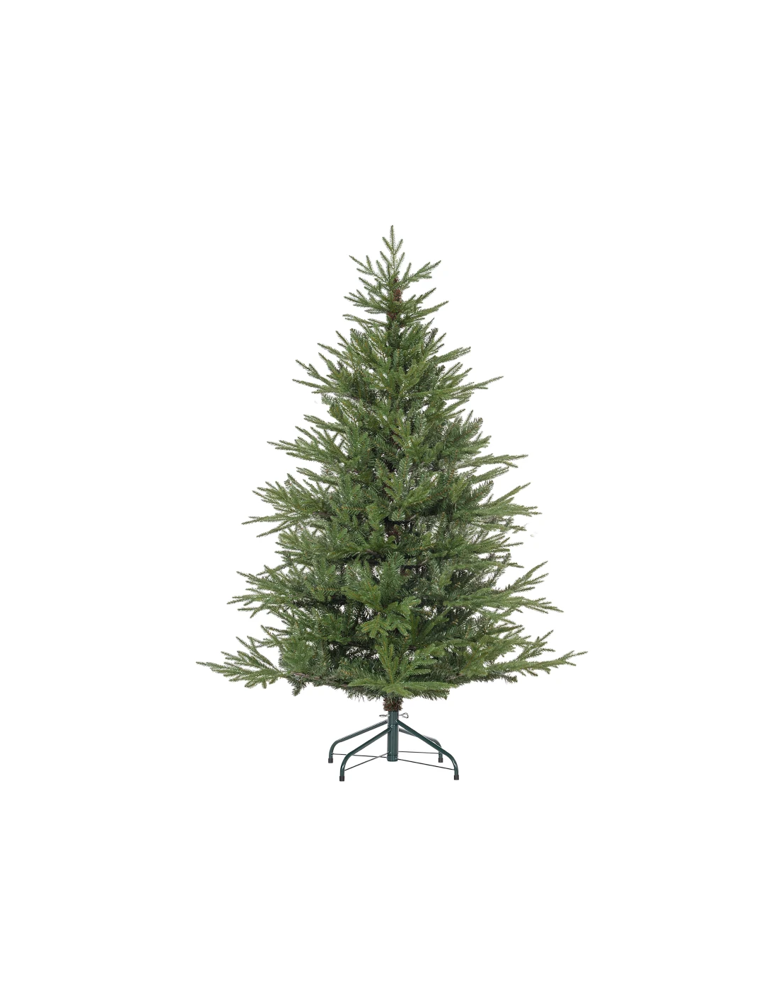 Kunstigt juletræ med naturtro grene. Træet måler cirka 150 cm i højden og 95 cm i diameter og kommer med fod.