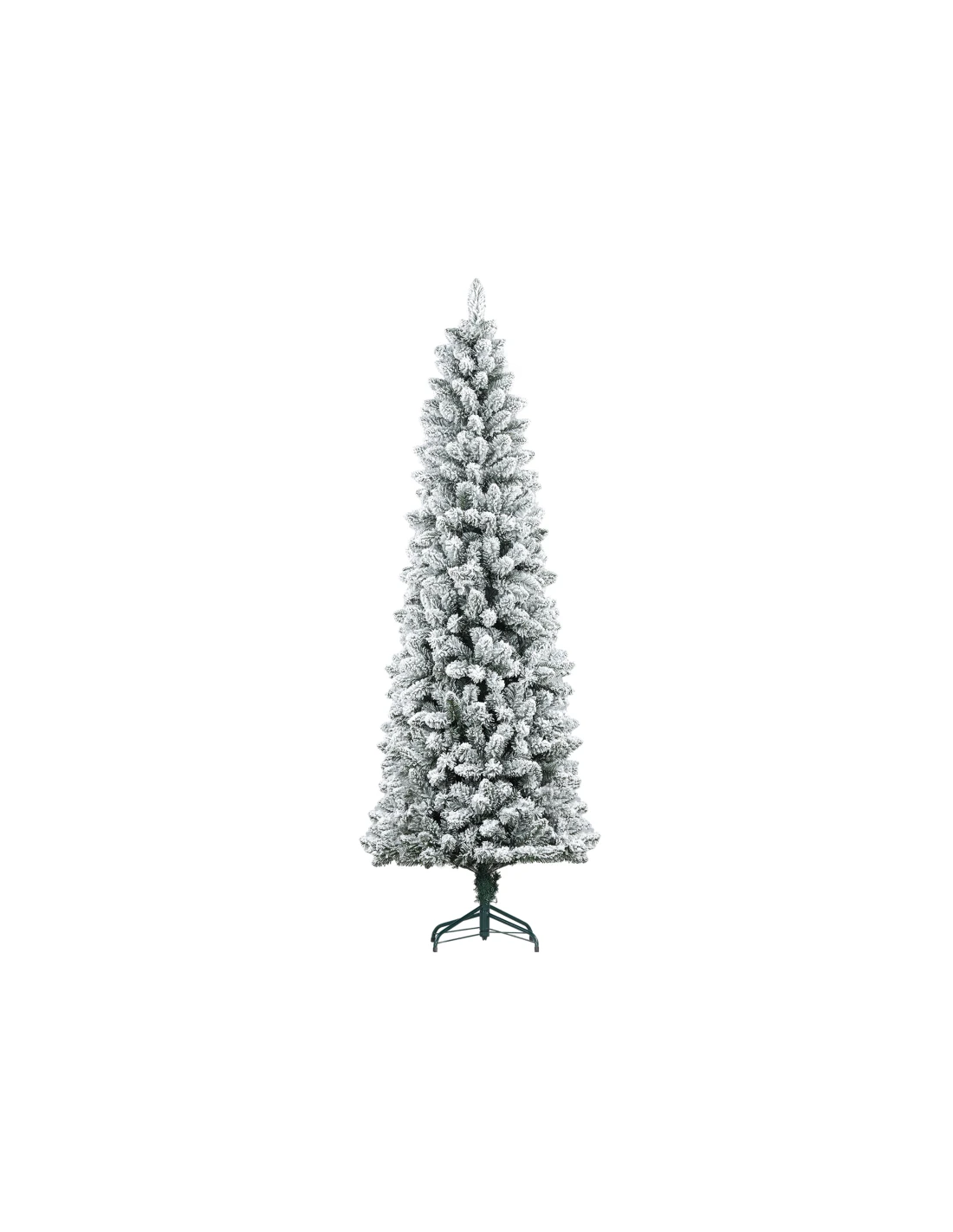 Kunstigt juletræ med naturtro grene med sne. Træet måler cirka 210 cm i højden og 75 cm i diameter og kommer med fod.