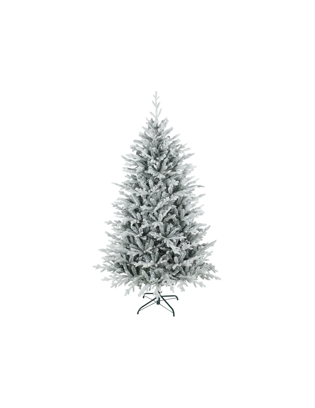 Kunstigt juletræ med naturtro grene med sne. Træet måler cirka 180 cm i højden og 109 cm i diameter og kommer med fod.