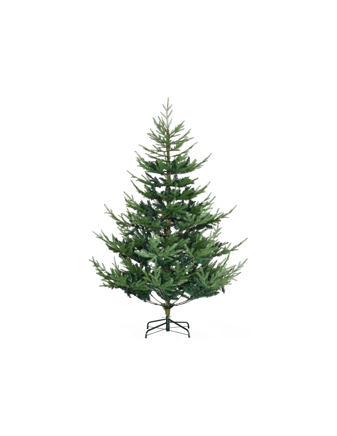 Kunstigt juletræ med naturtro grene. Træet måler cirka 180 cm i højden og 135 cm i diameter og kommer med fod.