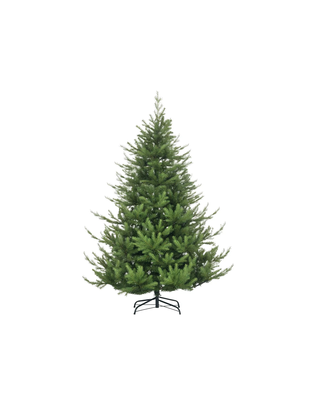 Kunstigt juletræ med naturtro grene. Træet måler cirka 180 cm i højden og 136 cm i diameter og kommer med fod.