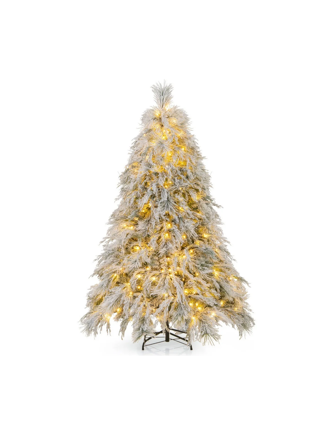 Kunstigt juletræ med naturtro grene med sne og led lys. Træet måler cirka 192 cm i højden og 110 cm i diameter og kommer med fod.